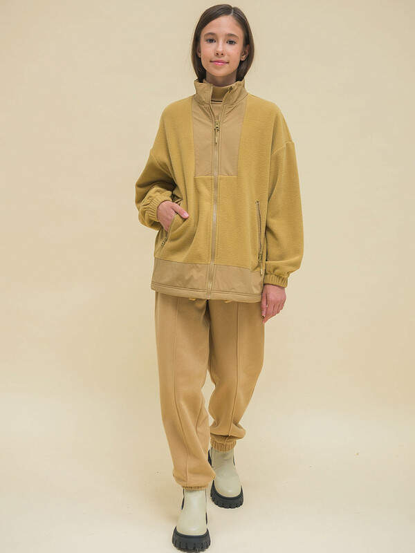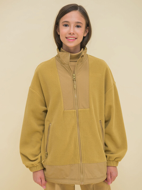 Состав: 100%полиэстер, вставка: 100%полиэстер Толстовка детская для девочки. Куртка модного оверсайз-силуэта со спущенным плечом подарит ребёнку комфорт и свободу движения. Классическая застёжка на центральную молнию спереди, вверху молнии ограничитель для безопаного застёгивания. Толстовка на замке выполнена из флиса. Воротник и вставки по горловине и низу изделия — из гладкой курточной ткани. Стильно и практично. Сочетание материалов разных фактур — модный тренд сезона. А детали из курточной ткани менее маркие при частых прикосновениях к ним. По низу изделия предусмотрена регулировка объёма эластичным шнуром со стопперами. Толстовка с воротником-стойкой, который защищает шею от холода и ветра. В манжетах рукавов комфортная широкая резинка, благодаря чему рукава имеют актуальную объёмную форму. По бокам прорезные карманы на молниях — удобно пользоваться. Модель однотонная, без принта. Изделие неприхотливо в уходе. Одежда из флиса тёплая, лёгкая, мягкая, просто стирается и быстро сохнет, не выгорает и не скатывается, сохраняет первозданную форму в течение длительного времени. Зип-толстовка выполнена в двух трендовых цветах: фиолетовый (лавандовый оттенок) и бежевый. В линейке представлены следующие размеры: 1 (86); 2 (92); 3 (98); 4 (104); 5 (110); 6 (116); 7 (122); 8 (128); 9 (134); 10 (140); 11 (146). Детская толстовка на молнии подходит маленьким девочкам, младшим школьницам и девочкам-подросткам. Она идеальна для детского сада, прогулок, отдыха, а также для дома. Толстовку можно носить круглогодично: летом, осенью, зимой, весной и демисезон. Её просто комбинировать с различными брюками, джинсами. Это отличный подарок дочери, внучке или сестре на Новый год и любой другой праздник. Комментарии к товару