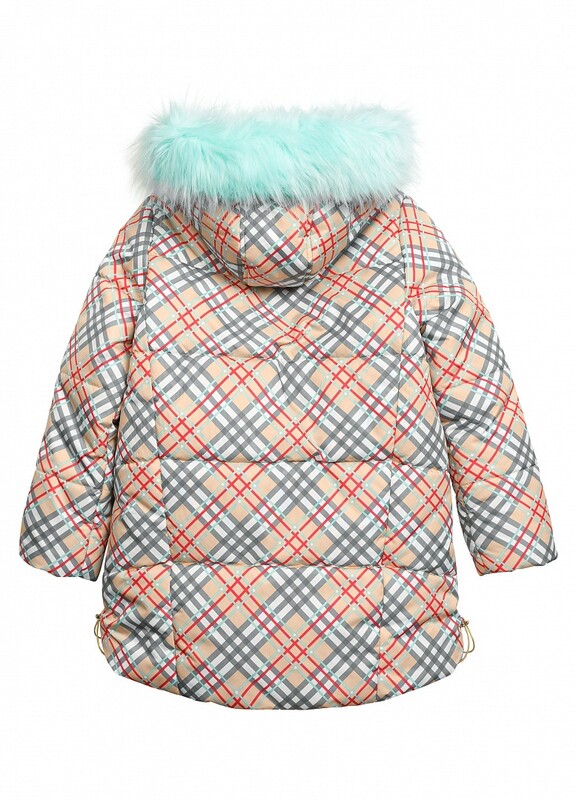 перепадом длин. Капюшон не отстегивается. Меховая опушка съемная. Регулировка объема по низу. Карманы в рельефных швах на молнии.