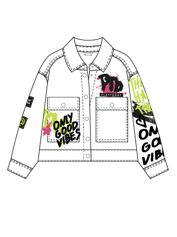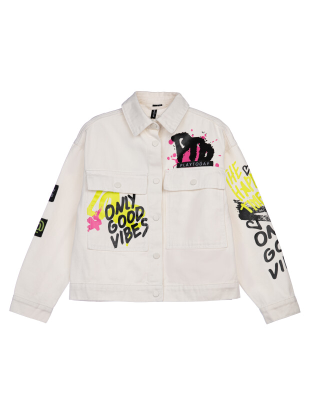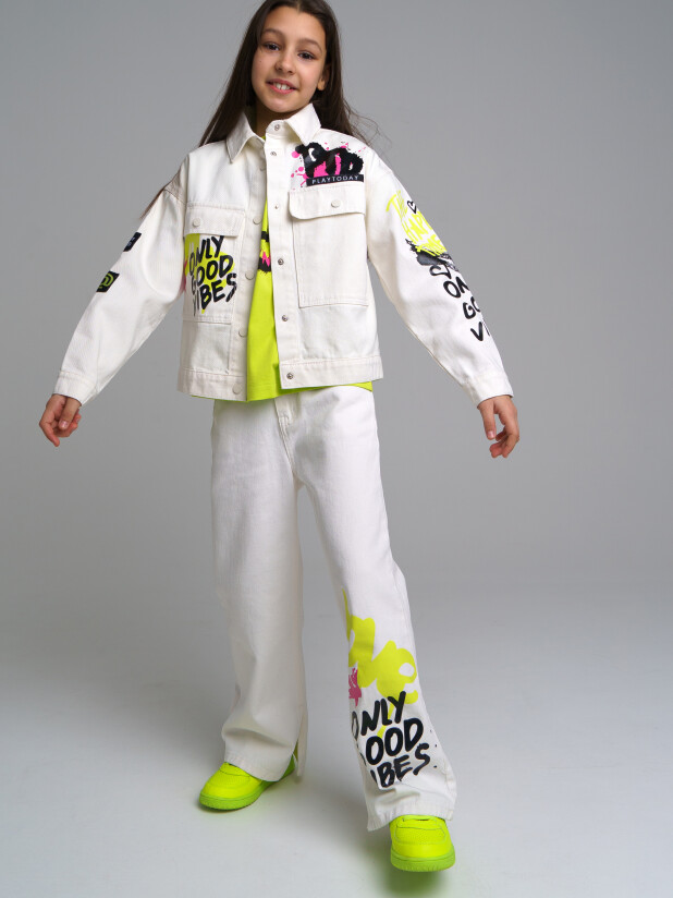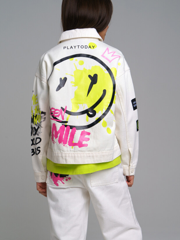 О товаре Куртка джинсовая. Свободная посадка. Укороченная длина. Застежка на кнопки. СОСТАВ 100% хлопок Уход Максимальная температура стирки 30°С. Мягкий режим. Не отбеливать. Гладить при температуре не более 150°С. Чистка запрещена. Можно выжимать и сушить в стиральной машине. Не гладить отделку. Предварительная стирка обязательна. Гладить с изнаночной стороны. Бренд PlayToday АРТИКУЛ 12321159 Цвет Белый, Зеленый Возрастная категория Школьники, Подростки Пол Женский Сезон Лето Год коллекции 2025 Страна бренда Германия Страна производства Китай Возраст 8 лет, 9 лет, 10 лет, 11 лет, 12 лет, 13 лет, 14 лет, 15 лет, 16 лет, 17 лет Маркировка Товары легкой промышленности и одежда Миниколлекция JUST SMILE