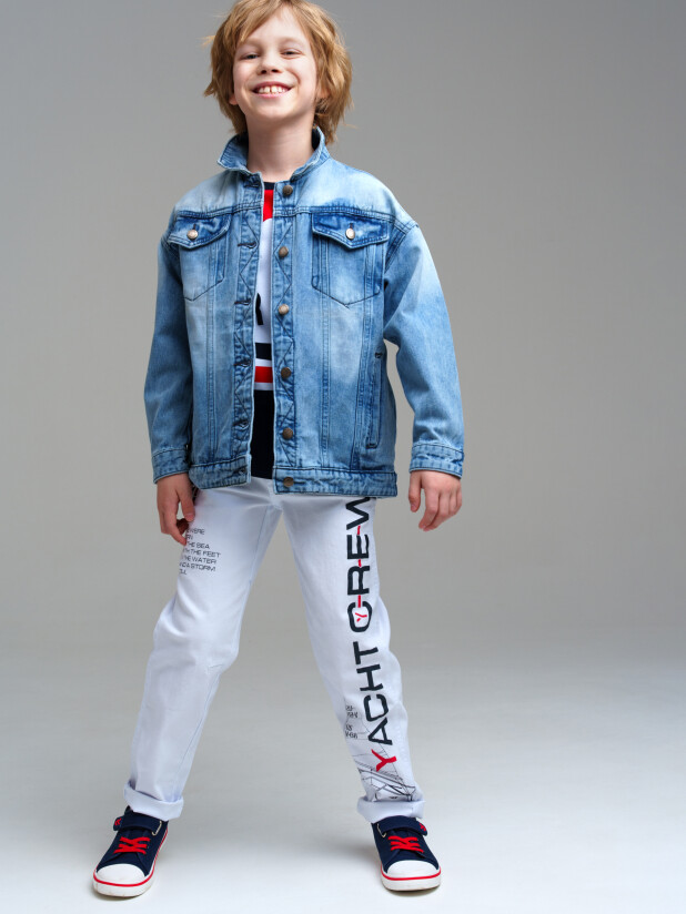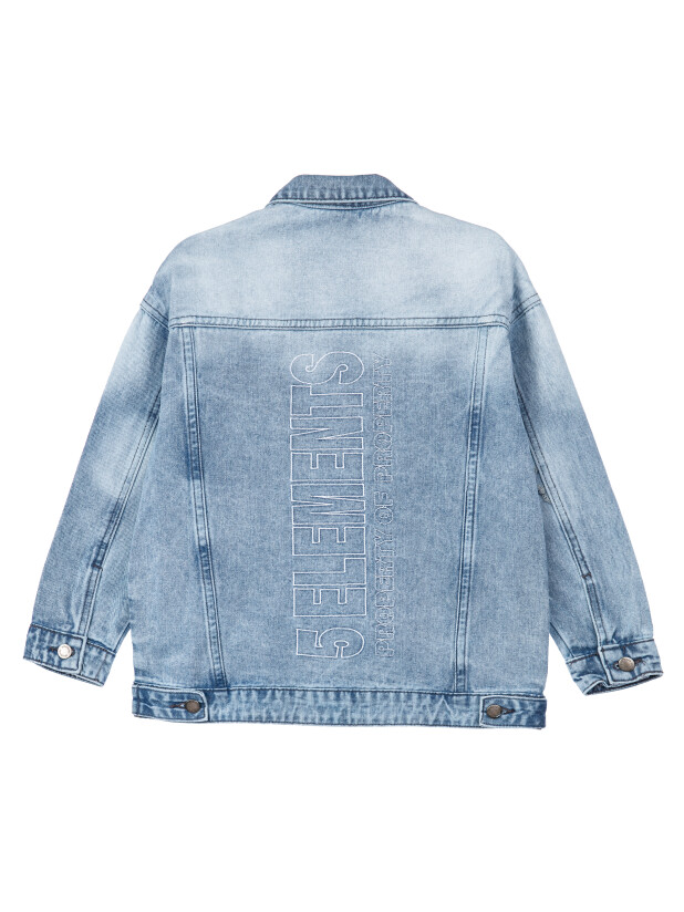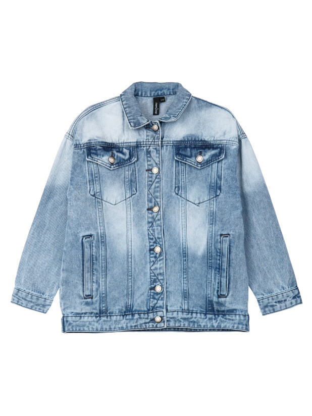 Куртка джинсовая из эластичного денима для мальчика подростка. Свободная посадка. Средняя длина. Застежка на болты.