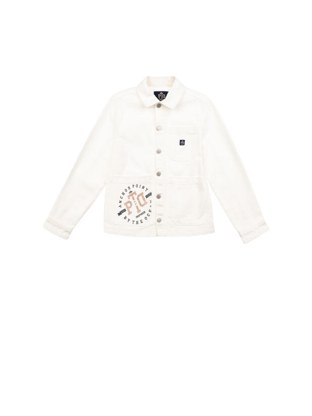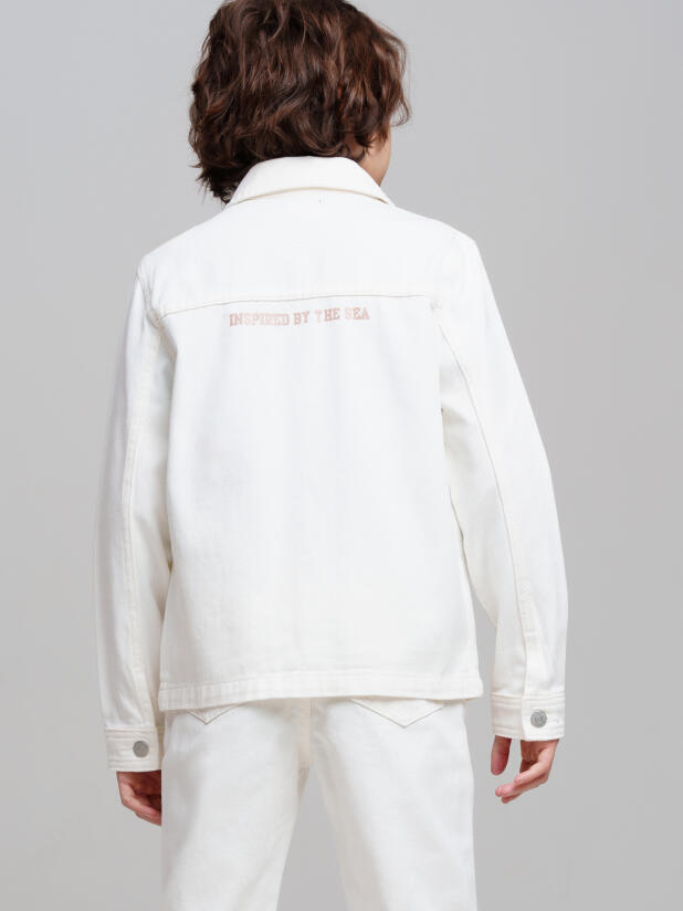 Джинсовка для мальчика подростка. Куртка джинсовая из эластичного денима. Функциональные нагрудный и боковые карманы. Средняя длина. Застежка на болты.