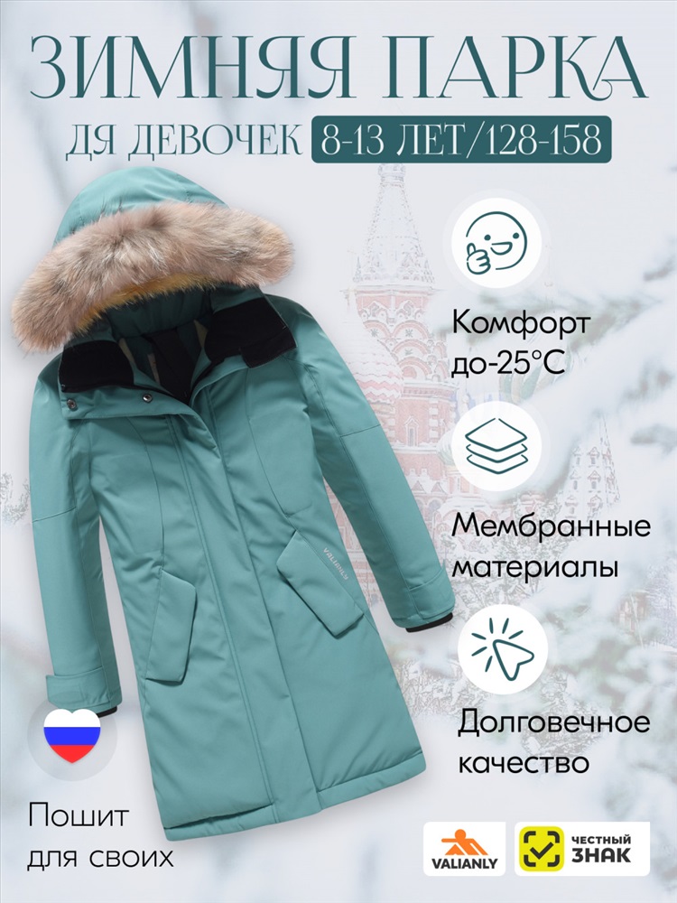 Производитель: VALIANLY; Артикул: 9444Z; Бренд: VALIANLY; Пол: Девочка; Сезон: Зима; Тип: Парка; Цвет: Зеленый; Рост: от 128 до 158; Диапазон температур: °С от + 5° до - 25°; Водонепроницаемость: 10 000 мм; Материал подкладки куртки: Полиэстер/Овчина; Материал подкладки капюшона: Полиэстер/Овчина; Материал подкладки воротника: Флис/Овчина; Материал наполнителя: Тинсулейт; Фактура материала: Плотная; Утеплитель, гр: от 400 до 520 гр; Плотность утеплителя (г/кв.м): 230; Покрой: свободный; Длина подола: Удлиненная; Тип рукава: Длинная на манжете; Внутренние карманы: Есть; Тип кармана: Прорезной/Накладной на молнии (с флисом); Форма воротника: Капюшон; Фиксаторы: На рукавах, на капюшоне, по середине; Опции капюшона: Съемный; Опции меха: Съемный; Декоративные элементы: Мех, Пояс/ремень, Светоотражающие элементы, Съемная опушка; Внутренние швы: Проклеены; Вид застежки: Двойная молния/Клапан/Кнопки; Особенности модели: family look, ветрозащита, водоотталкивающий материал, гипоаллергенный материал, дышащий материал, с разрезом; Вид одежды: Свободная, Утепленная модель; Стиль: Повседневный, школьный, Спортивный; Рисунок: Надписи, Логотип, Однотонный, Светится в темноте; Коллекция: Осень-зима 2024; Тренд: бэби-долл; Тип упаковки: Пакет; Цвет комплекта: фиолетовый, черный, зеленый, розовый; Габариты (ДхШхВ): 50 x 36 x 14 см; Вес: 1.3 кг