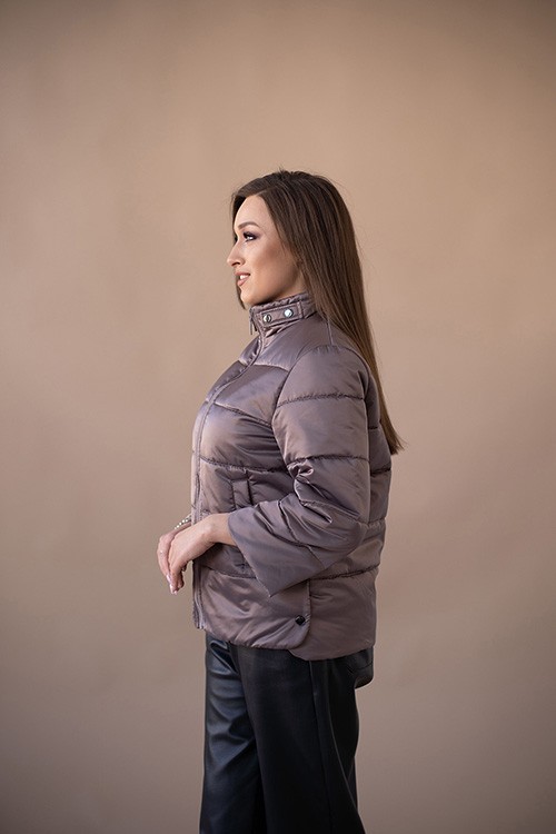 Модель: 23280; Материал: Плащевая ткань; Цвет: капучино Описание: Куртка женская демисезонная из плащевой ткани. Наполнитель: синтепон 120 Силуэт прямой. Воротник стойка. Застёжка на молнии. Рукав втачной, длина 7/8. Боковые разрезы на кнопках. Длина рукава 49 см. Длина изделия по спинке 64 см.