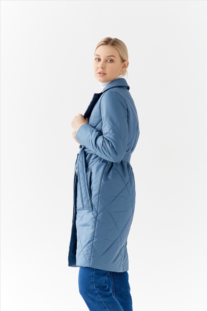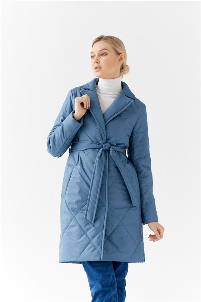 Модель: 24830; Материал: Плащевая ткань; Цвет: джинс; Состав: 100% полиэстер; Параметры модели: 165, 82/58/90; Размер на модели: 42 Описание: Куртка демисезонная с втачным рукавом. Застёжка – на 3 пробивные потайные кнопки Воротник –английский. Карманы – прорезные с настрочной листочкой. Пояс –есть Длина по спинке от ростка – 95см. Длина рукава – 72см.