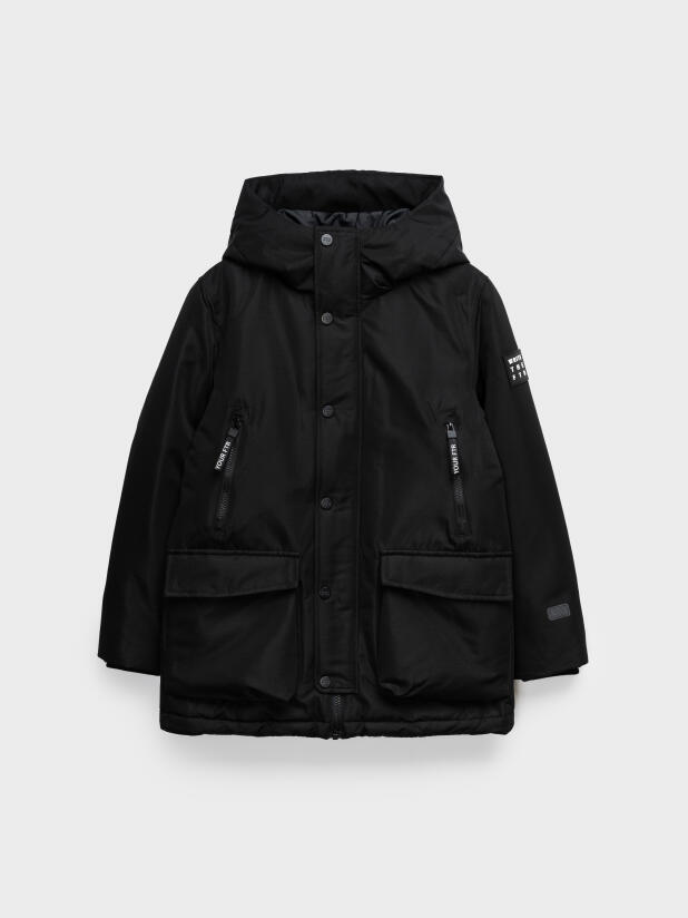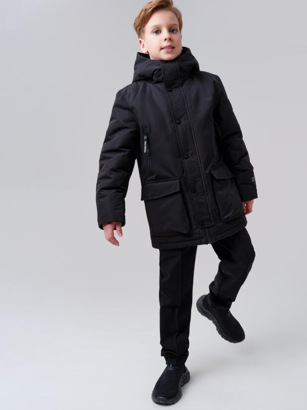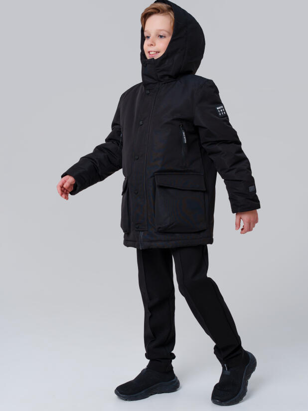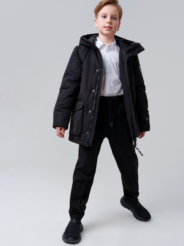Эта модель легко сочетается с джинсами, утеплёнными спортивными брюками и зимней обувью, а универсальный черный цвет делает куртку прекрасным дополнением к школьному образу. Модная и функциональная, она станет любимой верхней одеждой вашего ребёнка.