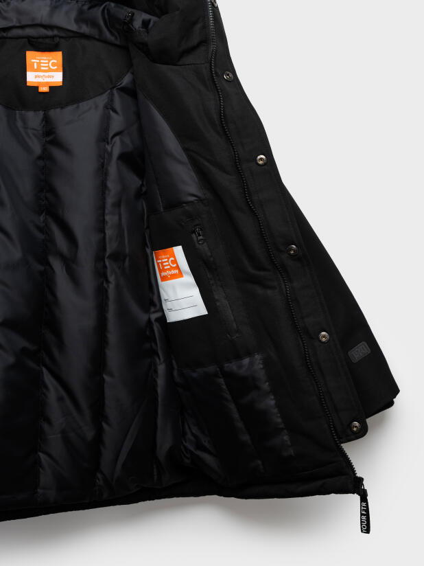 Капюшон плотно прилегает и регулируется по объёму — защищает голову от осадков и ветра. Комбинация карманов — накладные и прорезные, на кнопках и молниях — делает эту чёрную демисезонную куртку для мальчика практичной и удобной на каждый день. Внутренний карман подойдёт для хранения телефона или любимых перчаток PlayToday.