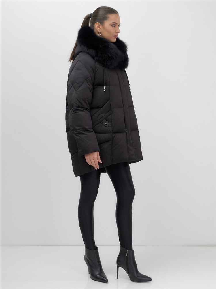 Высочайшее качество исполнения подтверждается каждым элементом: проклеенные швы, профессиональная обработка строчек, надежная фурнитура премиум-класса. Съемная опушка из натурального песца позволяет создавать различные образы – от статусного делового до элегантного повседневного. Мех песца высшей категории не только роскошно выглядит, но и обеспечивает непревзойденную защиту от холода.