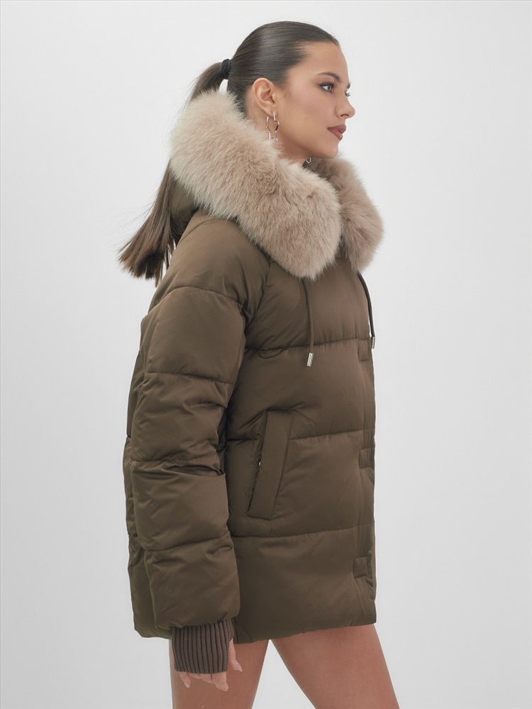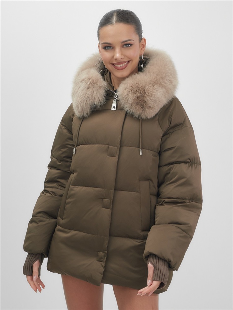 Четыре актуальных оттенка коллекции осень-зима 2025 – классический черный, роскошный коричневый, изысканный светло-коричневый и трендовый горчичный – великолепно гармонируют с натуральным мехом песца. Длина до бедра и свободный крой создают идеальные пропорции для размеров 44-52.