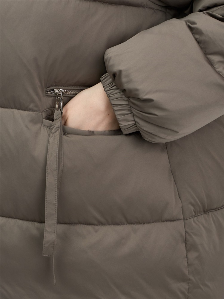 Четыре трендовых оттенка 2025 года – глубокий черный, благородный коричневый, элегантный бежевый и загадочный темно-зеленый – идеально гармонируют с роскошным мехом песца. Удлиненный силуэт до колена в сочетании с прямым кроем создает безупречные пропорции, делая фигуру более стройной.