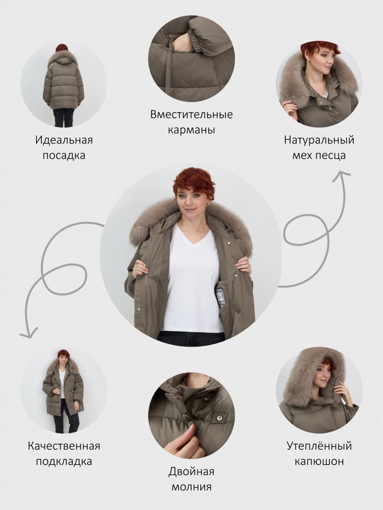 Производитель: Visdeer; Артикул: 7639K; Бренд: Visdeer; Пол: Женский; Сезон: Зима; Страна производителя: Китай; Тип: Молодежные; Цвет: Коричневый; Рост: от 158 до 190; Диапазон температур: от + 5° до - 20°; Водонепроницаемость: 7 000 мм; Комплектация: Куртка/Капюшон/Мех песец натуральный; Состав: 100% Полиэстер; Материал: Мембранные материалы, Полиэстер, Плащевка, Болонь, Экологичные материалы; Материал подкладки: Полиэстер; Материал подкладки капюшона: Мех песец/Полиэстер; Материал подкладки кармана: Полиэстер; Материал наполнителя: Полиэстер; Фактура материала: Шероховатая, стеганная; Утеплитель гр: от 320 до 460; Плотность утеплителя (г/кв.м): 200; Покрой: Прямой/Свободный; Длина одежды: до колена; Тип рукава: Длинный (на манжете); Внутренние карманы: Есть; Тип кармана: Накладной (на магните и на молнии); Воротник: капюшон; Фиксаторы: На капюшоне/По низу; Опции капюшона: Не съемный; Опции меха: Съемный; Декоративные элементы: Капюшон, Манжеты, Карманы, Мех; Внутренние швы: Проклеены/Прошиты; Вид застежки: Двойная молния/Кнопки/Клапан; Особенности модели: быстросохнущая, ветрозащита, водоотталкивающий материал, гипоаллергенный материал, дышащий материал, съемная опушка; Вид одежды: Свободный, утепленная модель; Стиль: Элегантный, Офисный/школьный, Повседневный; Рисунок: Однотонный; Коллекция: Осень-зима 2025; Тип упаковки: Пакет; Цвета: черный, коричневый, бежевый, темно-зеленый; Габариты (ДхШхВ): 55 x 40 x 15 см; Вес: 1.5 кг