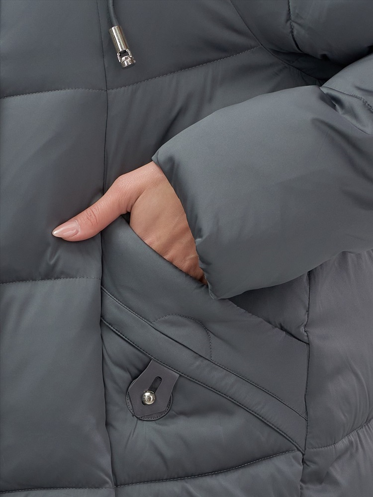 Высокотехнологичная мембрана 7000 мм и инновационный утеплитель плотностью 200 г/м² гарантируют комфорт до -20°C. Премиальные детали – двойная молния с защитным клапаном, вместительные карманы на магнитах и молнии, элегантные заклепки – подчеркивают статус владелицы.