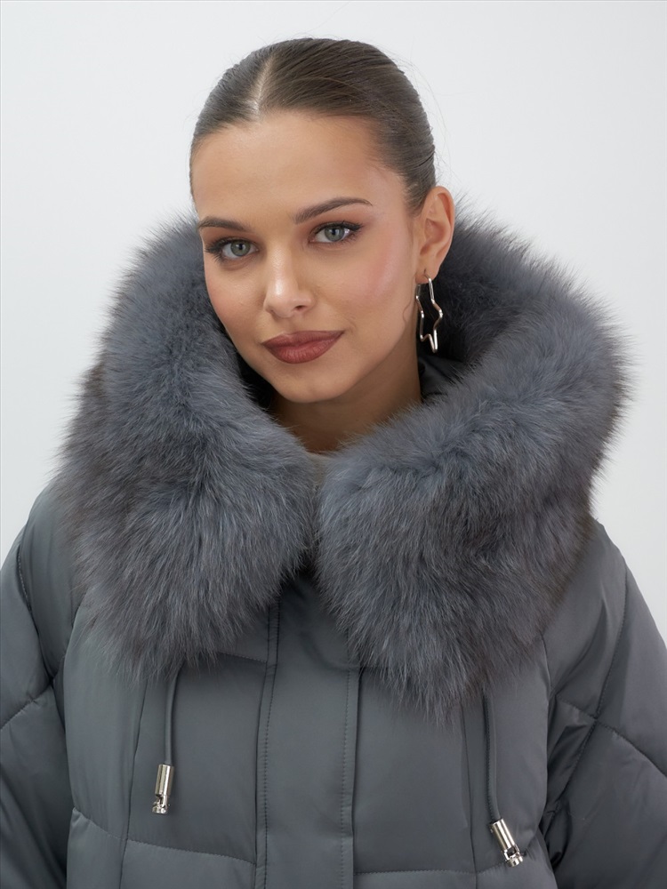 Изысканная цветовая палитра включает благородный черный, глубокий коричневый, утонченный светло-коричневый и аристократичный темно-серый. Каждый оттенок идеально подчеркивает природную красоту натурального меха песца. Удлиненный силуэт до колена в сочетании с продуманным кроем создает безупречные пропорции.