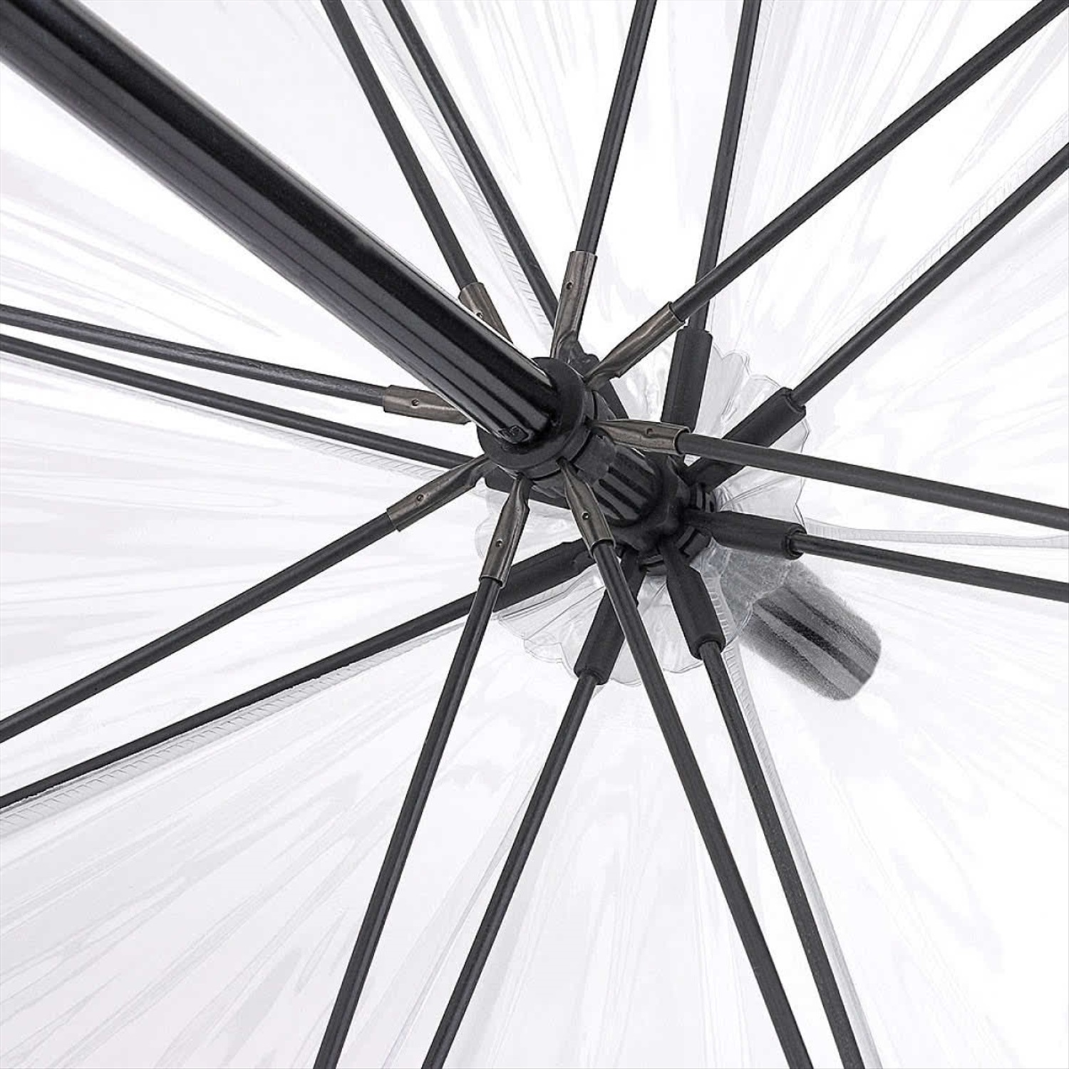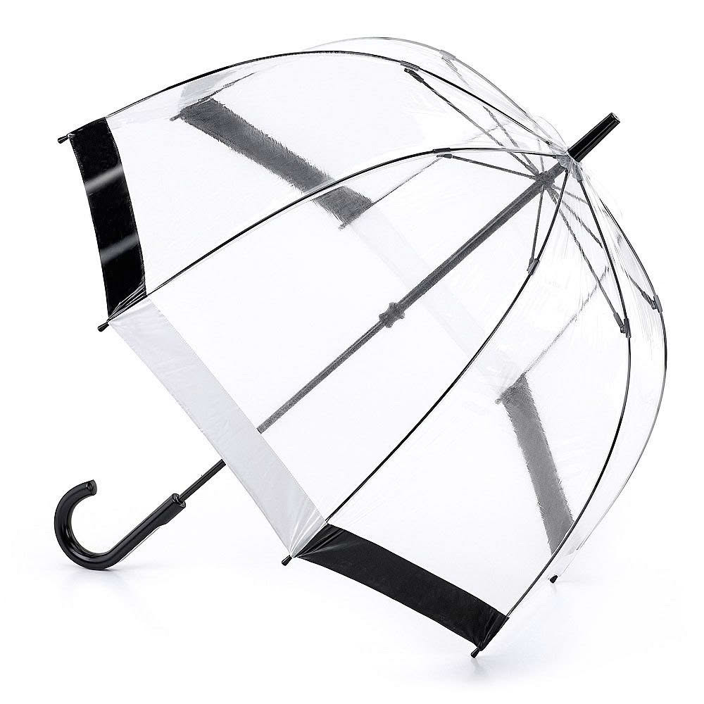 Материал спиц: фибергласс, Знаменитый «зонт королевы» с черно-белой отделкой в стиле арт-деко. Оцените, как изящно и элегантно смотрится купол конструкции birdcage – «птичья клетка». Высококачественный прозрачный пластик обеспечивает прекрасный обзор и не закрывает лицо от взглядов окружающих. Глубокий купол надежно защищает от дождя и ветра. Ручка изящная и удобная, конструкция каркаса ветроустойчивая.