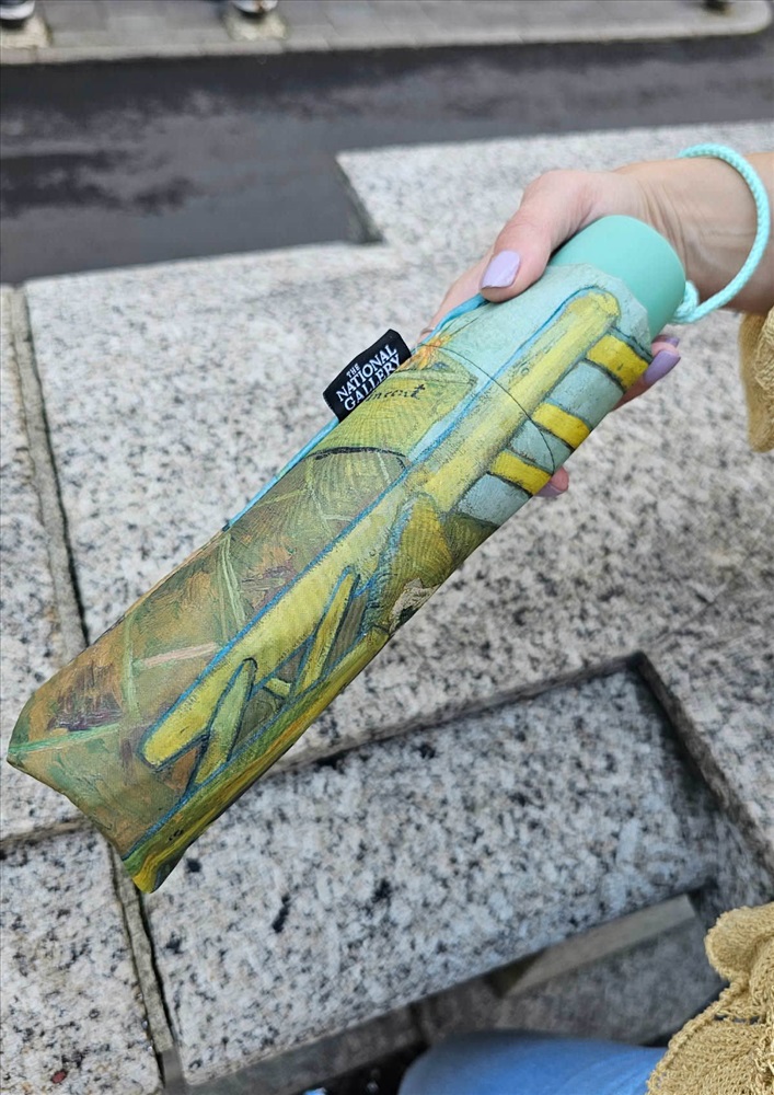 Материал спиц: алюминий, фибергласс, Под небом Ван Гога. Зонтик – «говорящий» аксессуар: это личная вещь, которую видят и оценивают все. Как найти баланс между доступным и скрытым? Свой ответ предлагает серия «Национальная галерея». Для этой модели использована картина Ван Гога. Для неискушенного зрителя на картине изображён просто стул, для знатока творчества художника – его эмоциональный автопортрет. При перенесении картины на зонт произошло маленькое чудо. Часть стены светло-голубого цвета на картине стала выглядеть на куполе как небо. Глухие стены судьбы творца обернулись простором для его почитателей. Зонт лёгкий, с удобной ручкой, под которую заправляются спицы, каркас ветроустойчивый, логотип размещен на рукоятке и на чехле. В оформлении использован фрагмент картины Винсента Ван Гога (1853-1890) «Стул Ван Гога» 1888, Национальная галерея, Лондон.