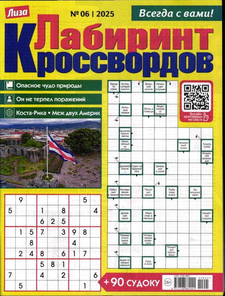 "Лиза. Лабиринт кроссвордов" - это новый ежемесячный журнал с самыми разными кроссвордами и головоломками. Журнал для всех, кто любит проводить свое свободное время, разгадывая кроссворды и решая задачки со словами и цифрами, кто любит головоломки, шарады, ребусы и загадки. Ведь в объемном журнале "Лиза. Лабиринт кроссвордов" представлены все виды развлечений на бумаге - сканворды, кейворды, чайнворды, судоку. И взрослые читатели, и дети найдут в журнале головоломки по душе, а разгадывать кроссворды в журнале "Лиза. Лабиринт кроссвордов" можно с помощью не только ручки, но и карандаша. В каждом номере - занимательные рассказы для любителей истории: о знаменитых людях, интересных событиях, открытиях и путешествиях. Журнал "Лиза. Лабиринт кроссвордов" - это 60 больших сканвордов на 100 страницах!