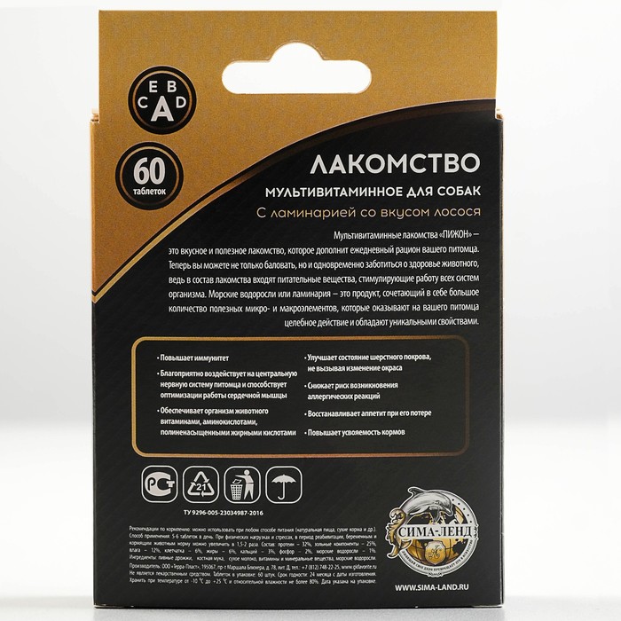Лакомство для собак "Пижон. Крепкий иммунитет" с ламинарией, со вкусом лосося, 60 таб