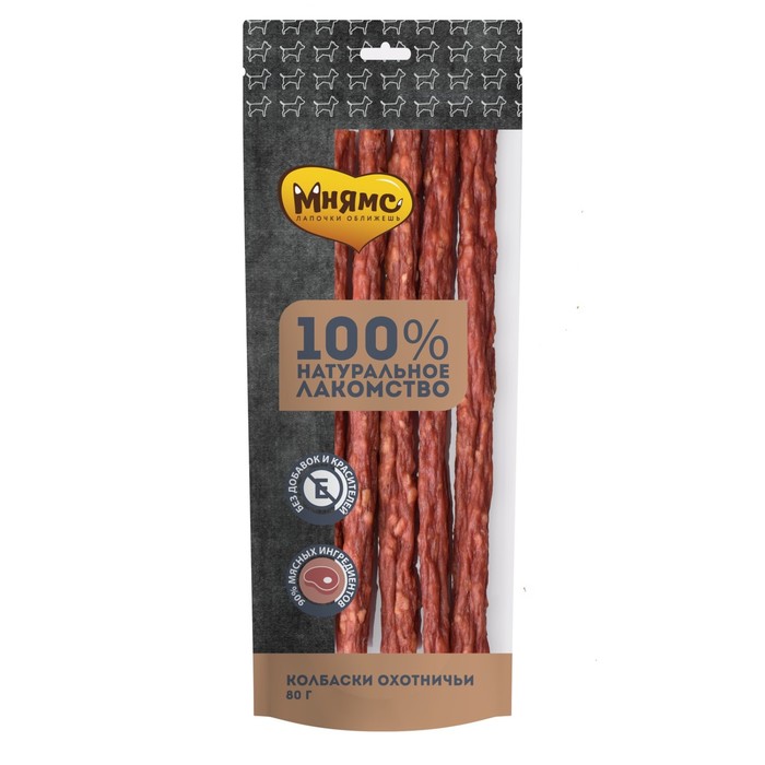 Производитель: Мнямс; Габариты: 1,5 x 8 x 20; Доставка: Платная; Страна: Россия; В боксе: 60 шт; Фасовка: по 1 шт; Габариты товара: 1,5 см × 8 см × 20 см; Сертификат: Не подлежит сертификации; Вес, г: 80; Вид лакомств: Колбаски; Особенности корма: Дополнительный; Порода/размер: Для всех пород; Форма упаковки: Пауч; Возраст животного: Взрослые собаки (от 1 до 5 лет); Меркурий: Да; Фиксированная цена: Да