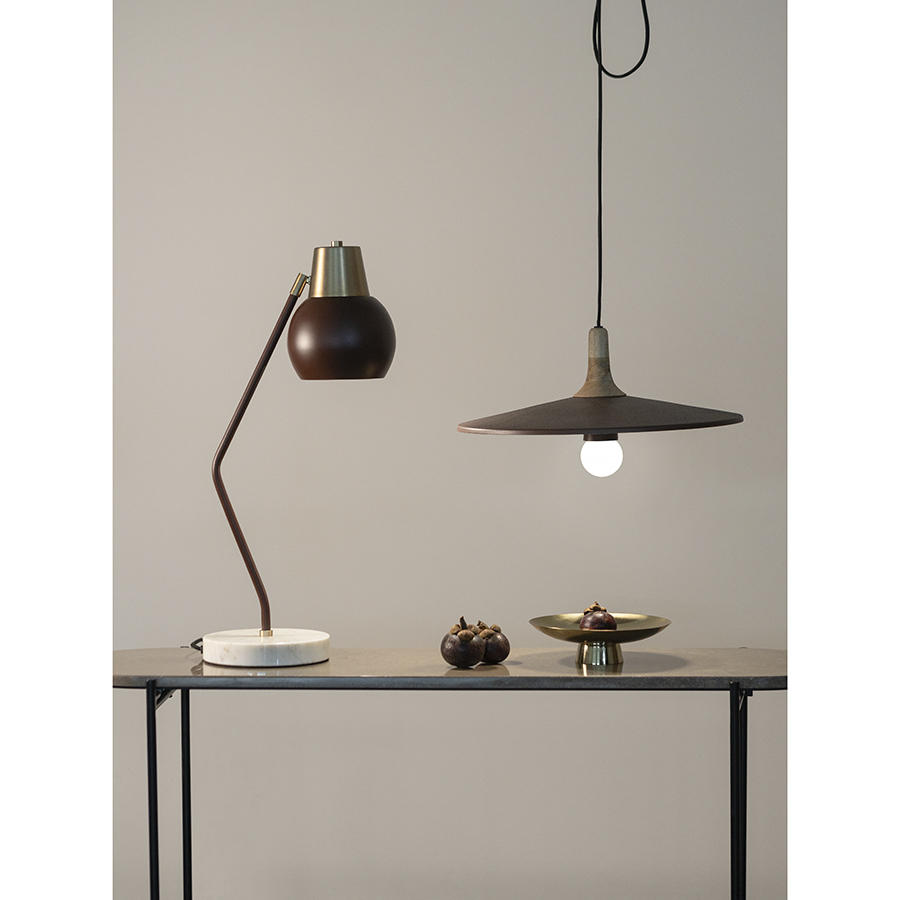 Название товара: Лампа настольная Rond, Ø18х60 см, сливовая Артикул: BB0000425 Материал: железо, латунь, мрамор Цвет: вишневый Вес: 5440 гр Размеры в упаковке (ШхГхВ): 65,5 х 38,5 х 29 см Размеры без упаковки (ШхГхВ): 18 х 18 х 60 см Лампа настольная Rond прекрасно дополнит интерьер с современным или традиционным дизайном. Модель привлекает лаконичными формами и модным цветовым решением. Особенности и преимущества: - Функциональные элементы из железа и латуни для долговечной эксплуатации. - Качественная подсветка рабочей поверхности благодаря регулируемому плафону. - Устойчивое основание из натурального мрамора, исключающее случайное падение. - Распространенный тип цоколя Е27, который подходит для большинства ламп. - Оригинальное цветовое решение и универсальный дизайн. Материал: железо, латунь, мрамор. Размеры: 18х18х60 см. Высота плафона: 19 см. Диаметр нижней части: 15 см. Диаметр верхней части: 11,5 см. Высота ножки: 51 см. Диаметр основания: 18 см. Цвет: сливовый. Тип цоколя: Е27. Максимальная мощность ламп: 5 Вт. Степень пылевлагозащиты: IP20. Переключатель: встроенный. Длина провода: 2,5 м. Лампы в комплекте: нет. Комментарии к товару