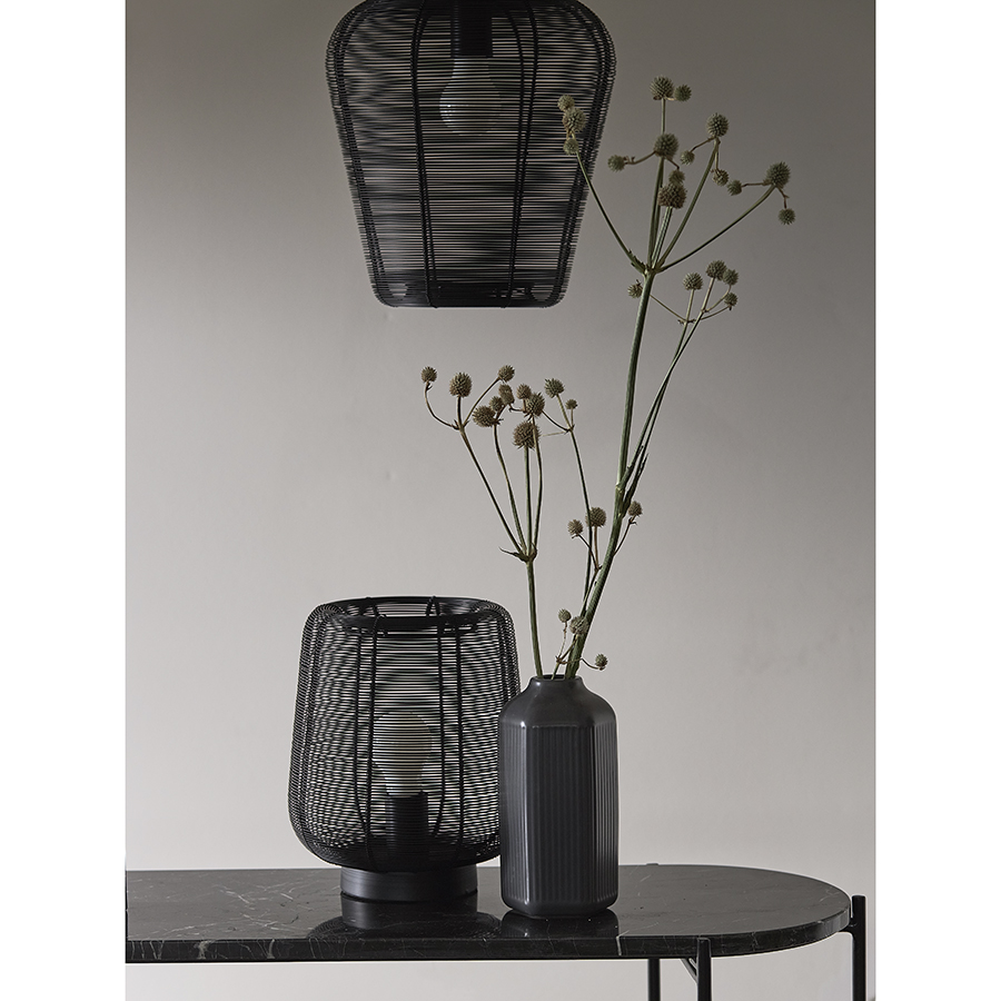 Коллекция: Vinger Название товара: Лампа настольная Vinger, Ø22х26 см, черная Артикул: BB0000368 Материал: железо Цвет: черный Вес: 2240 гр Размеры в упаковке (ШхГхВ): 26 х 27 х 31 см Размеры без упаковки (ШхГхВ): 22 х 22 х 26 см Лампа настольная Vinger от бренда Bergenson Bjorn – прекрасный способ добавить интерьеру характер и индивидуальность. Светильник привлекает качественным исполнением и интересным дизайном. Его плафон из металлической сетки рисует на стенах и потолке живописные тени, создавая в помещении волшебную атмосферу. Особенности и преимущества: - Светильник с плафоном из железной сетки смотрится необычно и идеально подходит в качестве акцентного элемента. - Популярный цоколь Е27 подходит к большинству ламп, включая энергосберегающие источники света. - Компактная модель занимает минимум места на столе и других поверхностях. Материал: железо. Размеры: 22х22х26 см. Цвет: черный. Тип цоколя: Е27. Степень пылевлагозащиты: IP20. Длина провода: 2,5 м. Максимальная мощность: 40 Вт. Лампы в комплекте: нет. Комментарии к товару