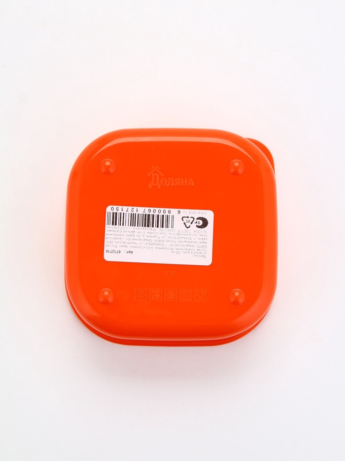 Производитель: Сима-ленд; Габариты: 12,5 x 12,5 x 6; Страна: Россия; В боксе: 90 шт; Состав: См. на упаковке; Материалы: см. на упаковке; Фасовка: по 1 шт; Индивидуальная упаковка: Без упаковки; Сертификат: РСТ; Набор: Нет; Цвет: Оранжевый; Объём, л: 0,7; Объём, мл: 700; Рисунок: Да; Символ года: Нет; Тематика праздника: Новый год; Материал: Пластик; Герметичная крышка: Да; Наличие столовых приборов: Нет; Индивидуальная упаковка: Нет; Можно мыть в посудомоечной машине: Да; Можно использовать в СВЧ-печи: Да; Цвет крышки: Оранжевый; Особенности: Герметичный