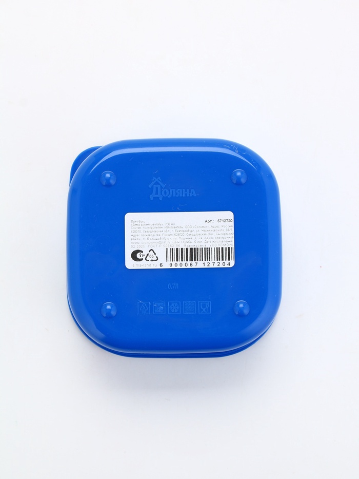 Производитель: Сима-ленд; Габариты: 12,5 x 12,5 x 6; Страна: Россия; В боксе: 90 шт; Состав: См. на упаковке; Материалы: см. на упаковке; Фасовка: по 1 шт; Индивидуальная упаковка: Без упаковки; Сертификат: РСТ; Набор: Нет; Цвет: Синий; Объём, л: 0,7; Объём, мл: 700; Рисунок: Да; Символ года: Нет; Тематика праздника: Новый год; Материал: Пластик; Герметичная крышка: Да; Наличие столовых приборов: Нет; Индивидуальная упаковка: Нет; Можно мыть в посудомоечной машине: Да; Можно использовать в СВЧ-печи: Да; Цвет крышки: Синий; Особенности: Герметичный