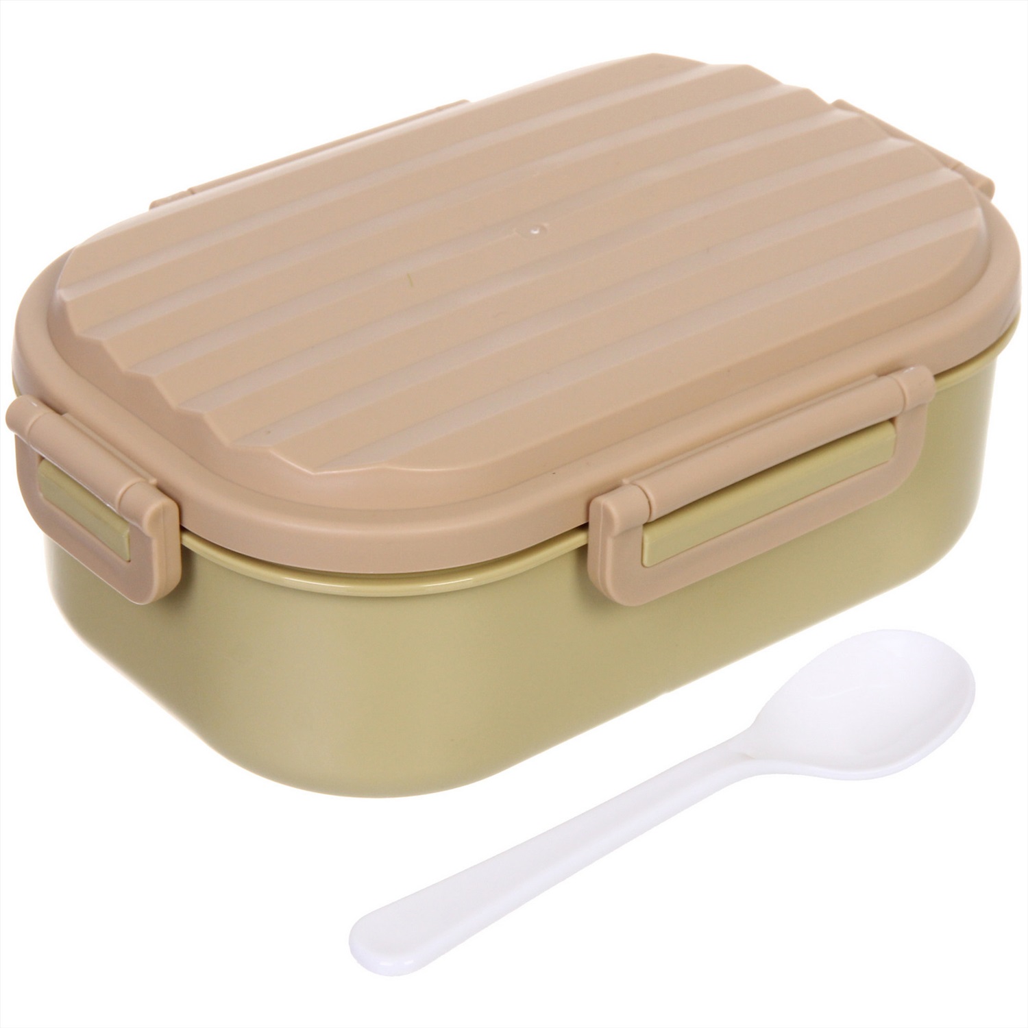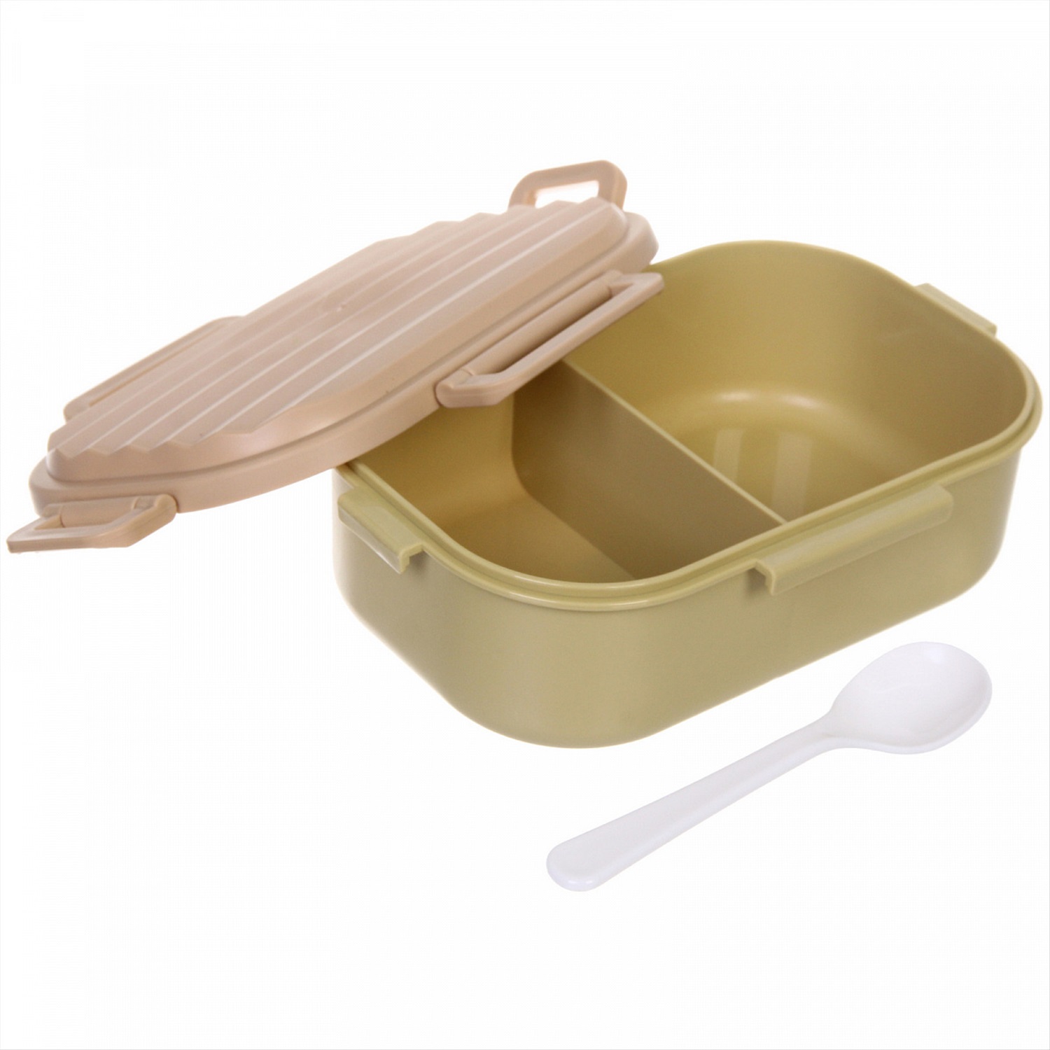 Ланч-бокс пластиковый "SEGRETO" (2отделения с ложкой) 13,6*9см оливковый