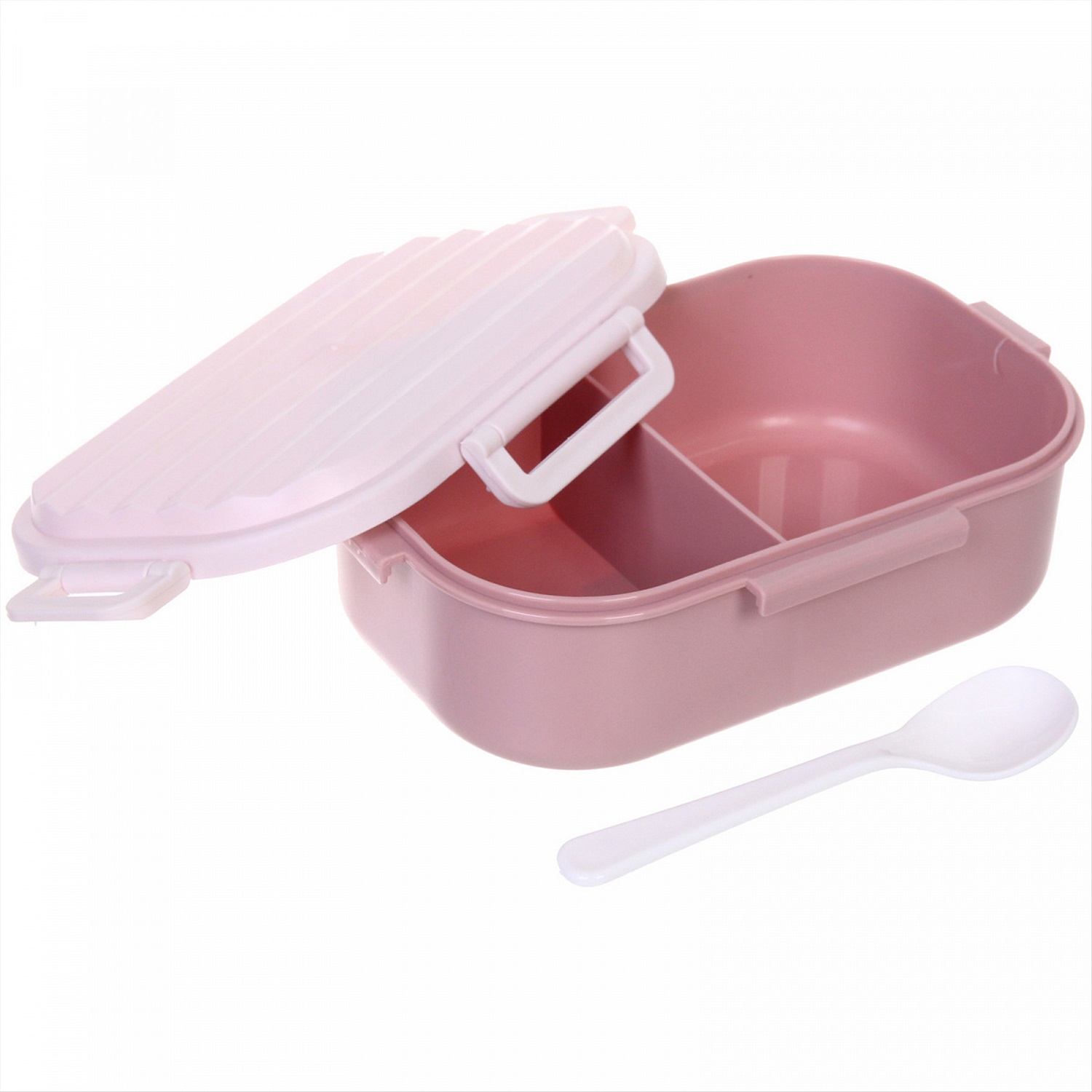 Ланч-бокс пластиковый "SEGRETO" (2отделения с ложкой) 20*14*7см пыльная роза
