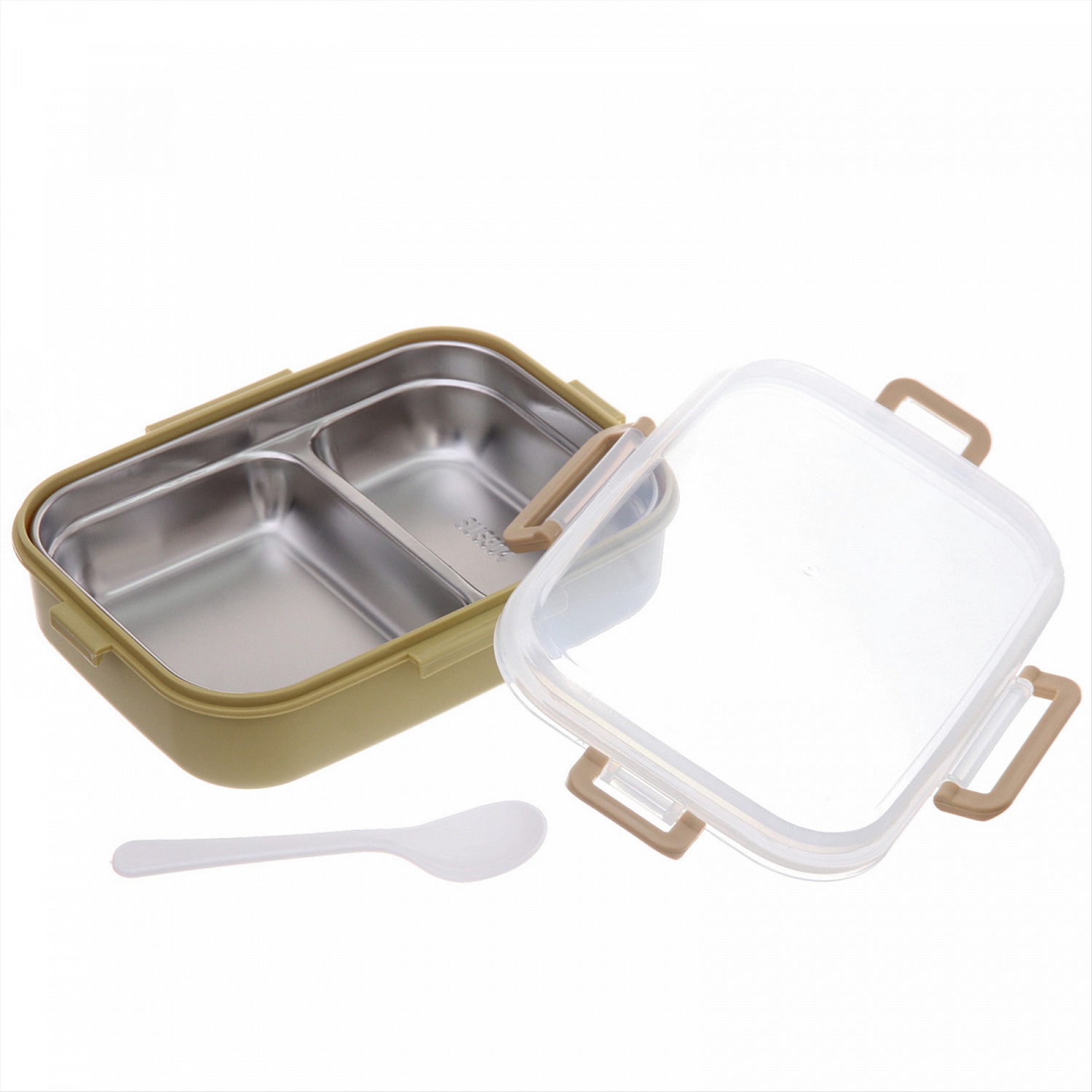 Ланч-бокс пластиковый "SEGRETO" (2отделения с ложкой) 20*15*7см оливковый