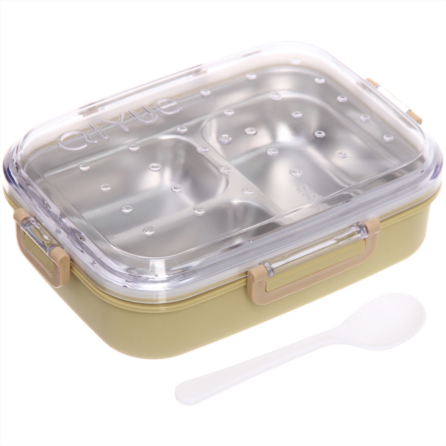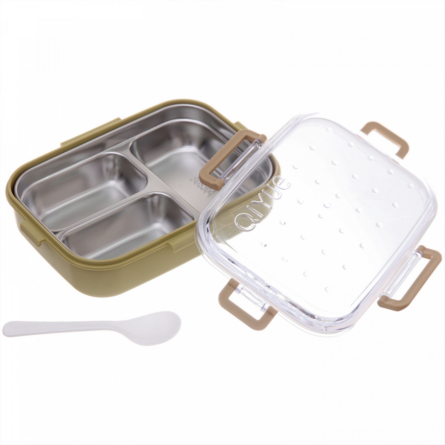 Ланч-бокс пластиковый "SEGRETO" (3отделения с ложкой) 22*17*7см оливковый