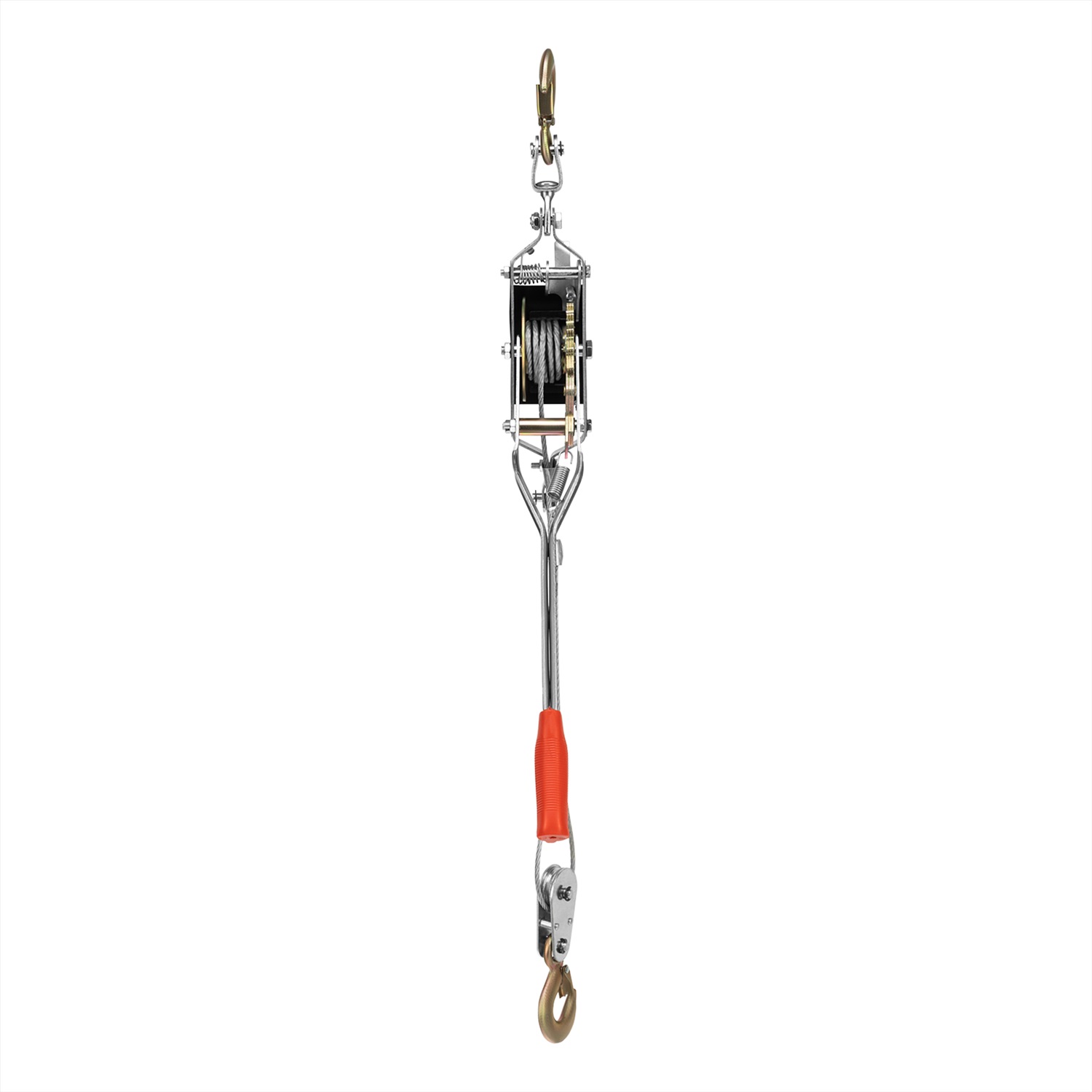 Рычажная лебедка Sparta 522155, тяга - 1,5 т, подъем - 0,6 т, с одинарным храповым колесом, используется для поднятия и передвижения грузов в вертикальной, горизонтальной и наклонной плоскости. Это незаменимое устройство для автомобилистов, используемое при необходимости эвакуации авто. Также она пригодится в быту в процессе погрузочных работ. Рычажный механизм не требует больших физических усилий от оператора.