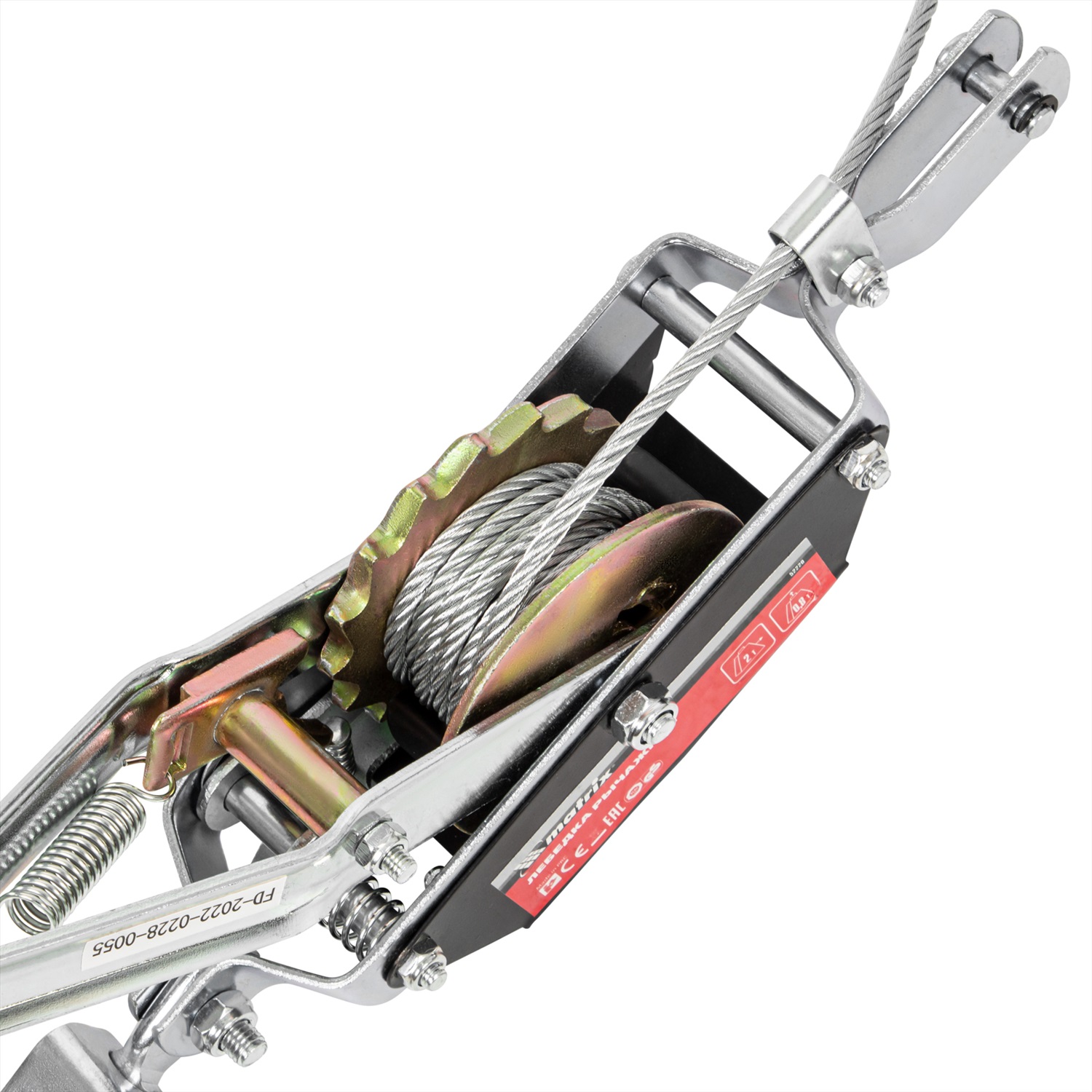 Рычажная лебедка Matrix 52220 с одинарным храповым колесом обеспечивает усилие тяги 2 т и подъема — 0,8 т. Используется для поднятия и передвижения грузов в вертикальной, горизонтальной и наклонной плоскости. Рычажный механизм не требует больших физических усилий от пользователя. Лебедка незаменима для автомобилистов в случае необходимости эвакуации авто. Также пригодится для погрузочных работ в быту.