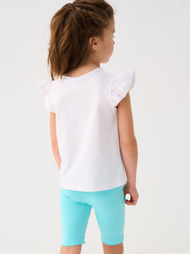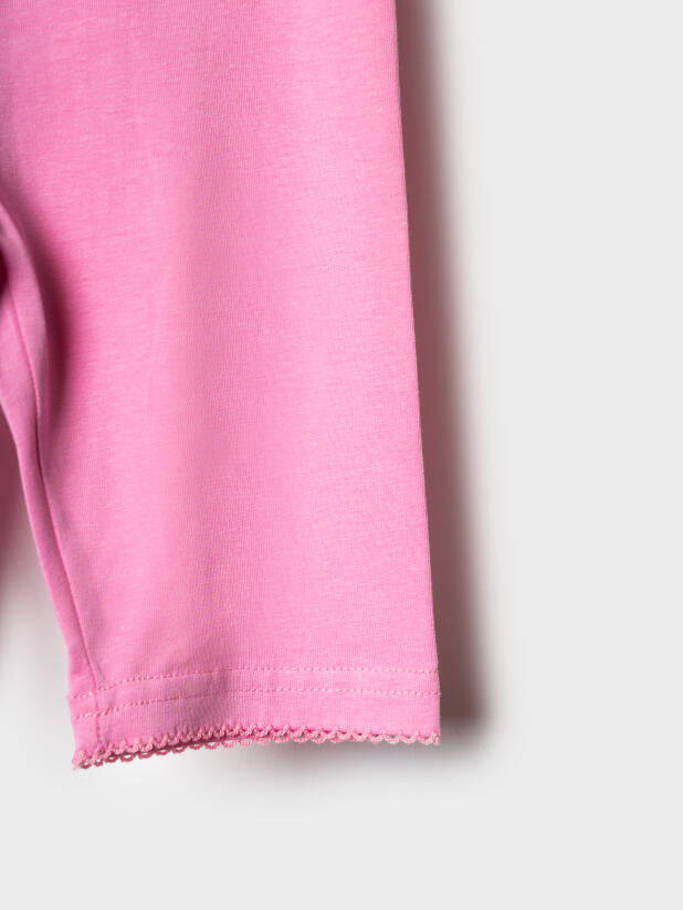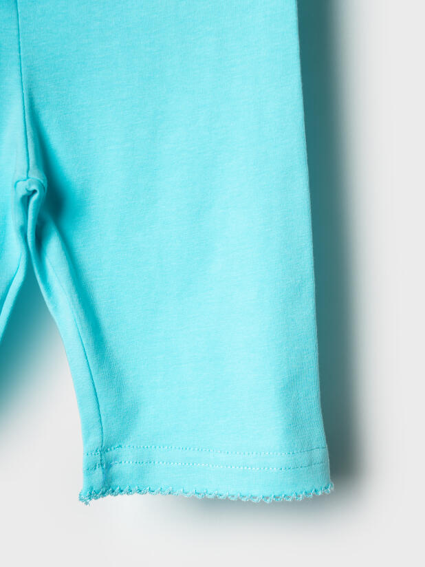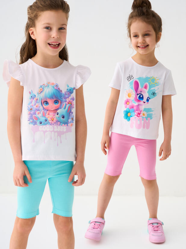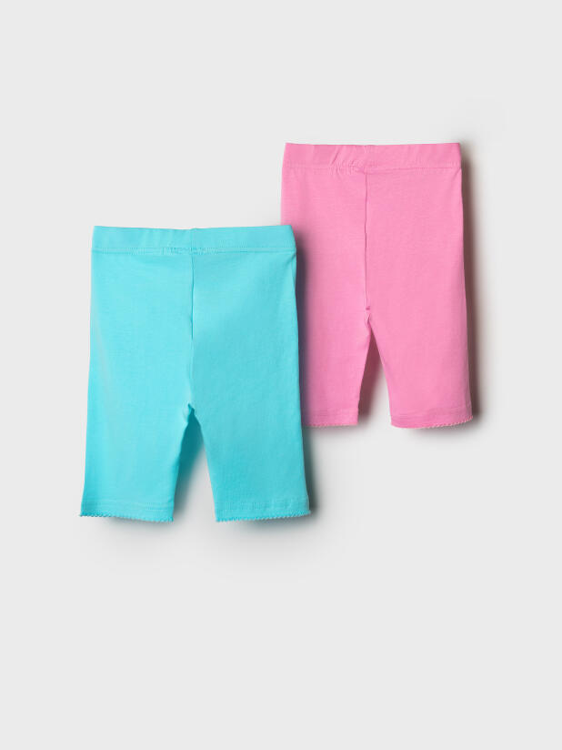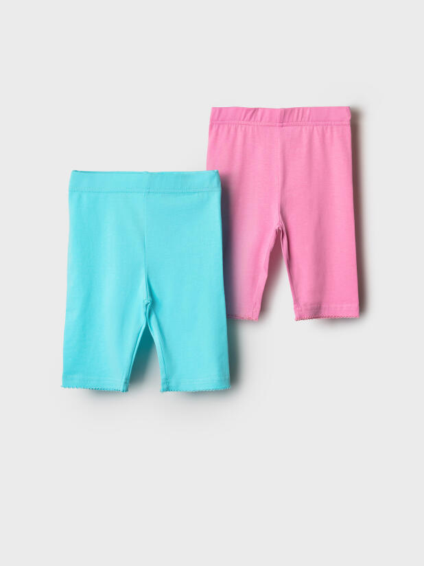 Набор детских легинсов для девочки. Комплект состоит из двух пар укороченных легинсов в нежных пастельных цветах. Обе модели имеют высокую посадку и эластичный пояс, который хорошо фиксирует изделие на талии. Материал - мягкий, хлопковый трикотаж.