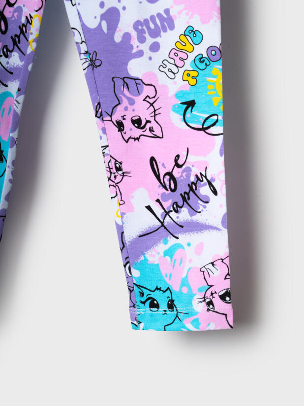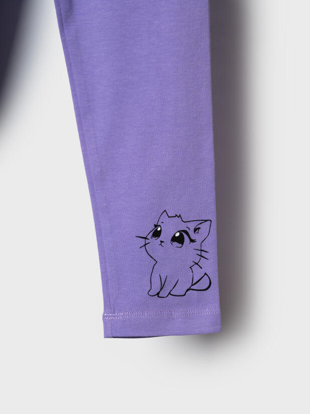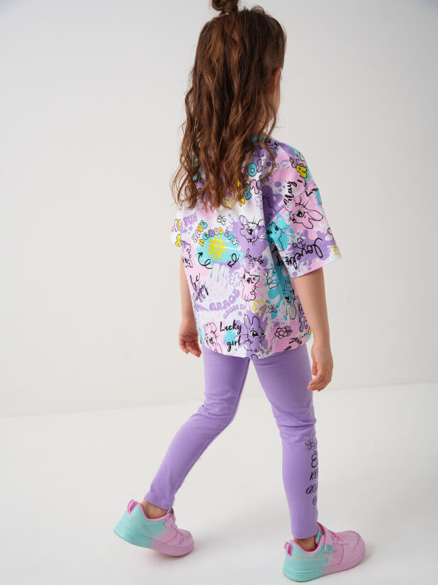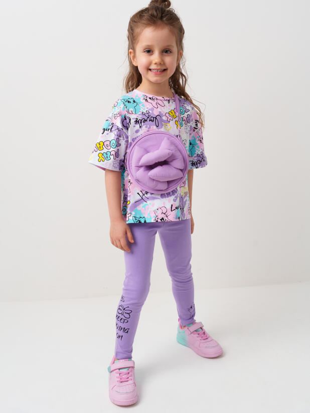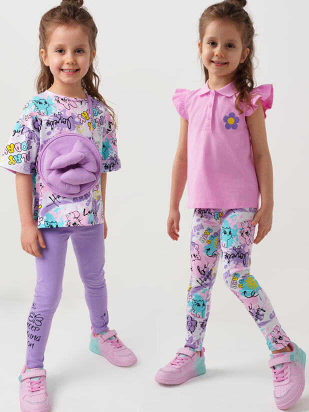 Набор детских легинсов для девочки. Комплект состоит из двух пар длинных легинсов. Обе модели имеют высокую посадку и эластичный пояс, который хорошо фиксирует изделие на талии. Материал - мягкий, хлопковый трикотаж.