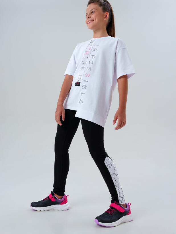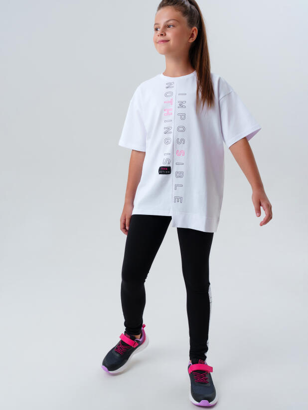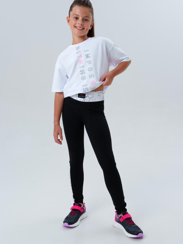 Совет по стилю: комбинируйте такие стильные эластичные леггинсы для подростков с чёрным или цветным купальником, топом или футболкой из спортивной линейки PlayToday — идеальное решение для занятий, тренировок, соревнований и показательных выступлений.