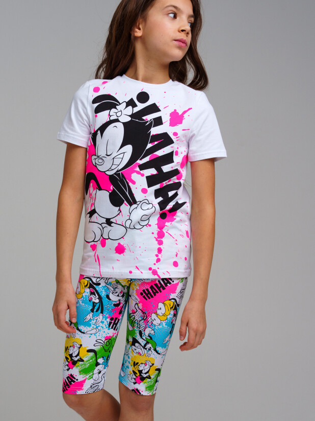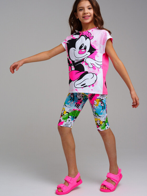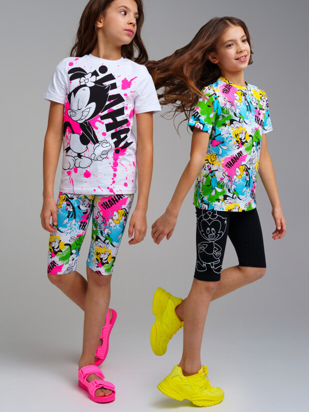Укороченные легинсы из качественного и приятного на ощупь трикотажа джерси. Высокое содержание хлопка 95%. Благодаря наличию эластана в составе ткани изделие проще в уходе и держит форму. Эластичный пояс. 2 пары в комплекте.