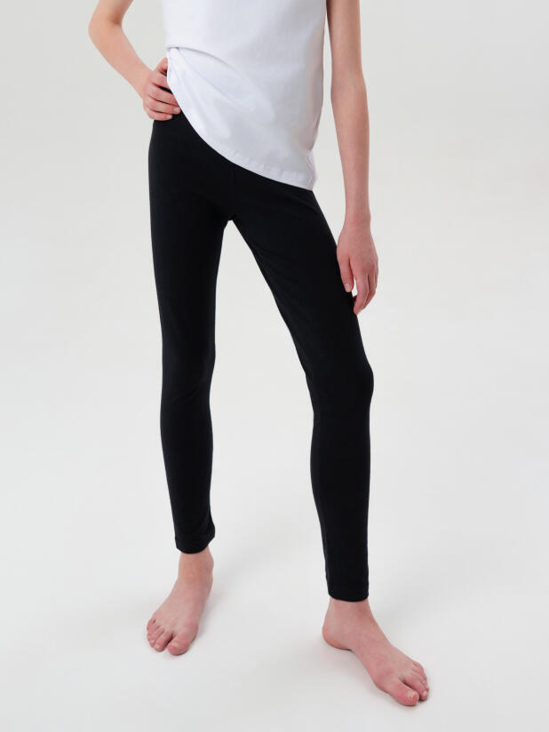 Базовые школьные хлопковые леггинсы представлены в размерах на рост 116–170 см — подойдут для девочек от 6 до 16 лет.
