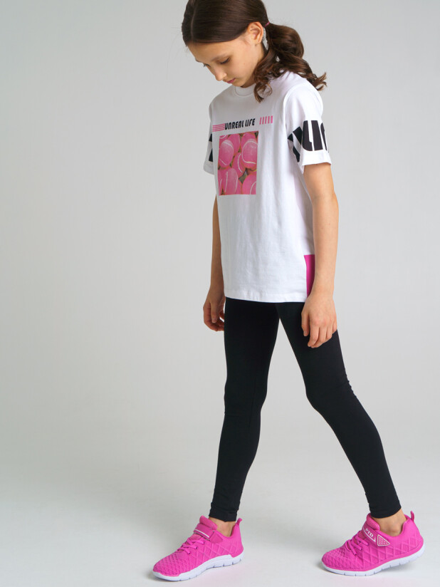 Совет по стилю: сочетайте эти чёрные классические леггинсы для подростков с футболками, худи и спортивными куртками от PlayToday — получится комфортный и стильный образ для школы, секций и отдыха. Для физкультуры идеально подойдут базовые футболки и сменная обувь бренда.