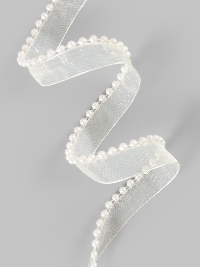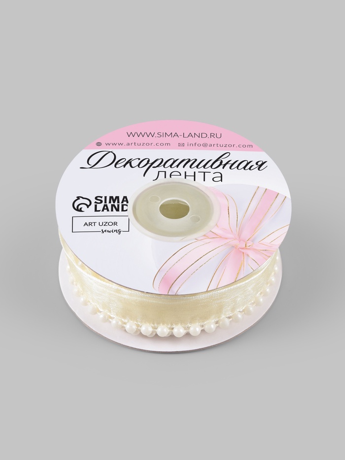 Лента декоративная с бусинами, 12 мм, 4.5±0.5 м, цвет слоновая кость №08