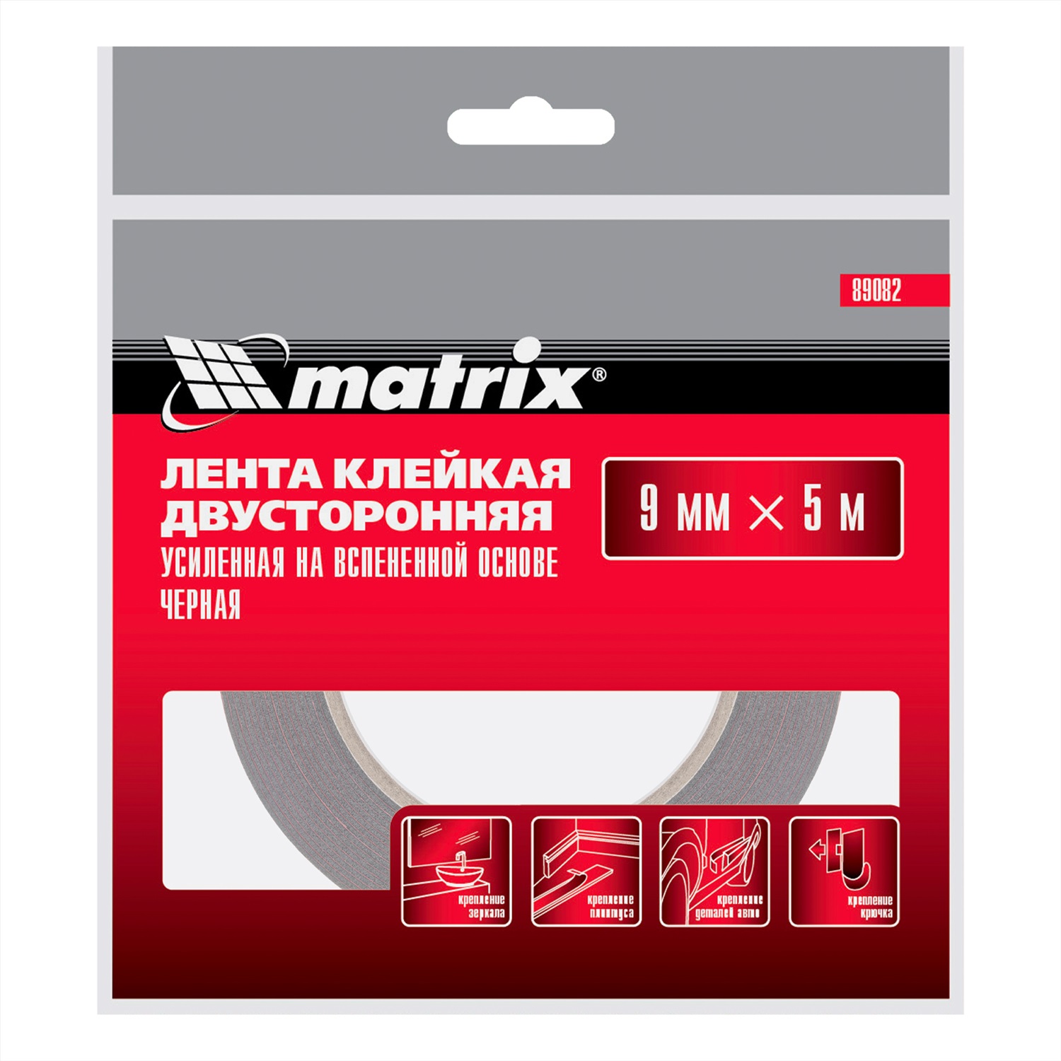 Усиленная двусторонняя клейкая лента Matrix 89084 на вспененной основе, размером 9 мм х 5 м, черного цвета, надежно соединяет ровные и шероховатые поверхности без риска их повреждения. Подходит для склеивания предметов из металла, пластика, картона, керамики, стекла. Пригодится в ходе проведения ремонтных, монтажных работ, а также для занятий рукоделием. Лента может использоваться для монтажа предметов, подвергающихся вибронагрузкам и сдвигам: автомобильных молдингов, зеркал, крючков и т.д.