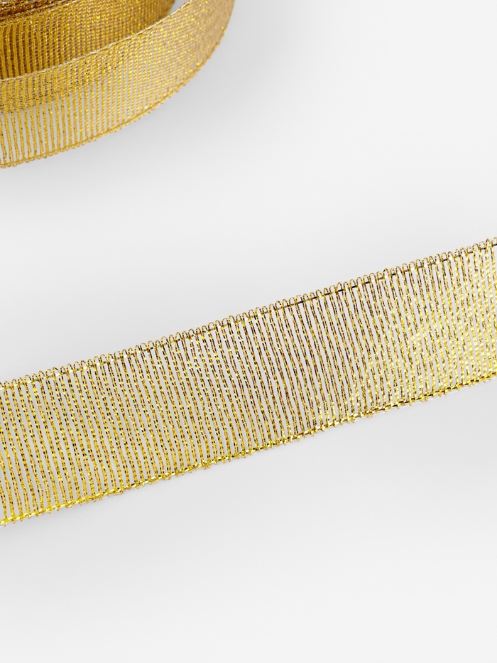 Оберните её вокруг свечей или еловых веток для мгновенного праздничного настроения. Комбинируйте с бархатом и кружевом для винтажных открыток. Используйте в скрапбукинге или как акцент на подарочных коробках — золотой оттенок делает любой предмет наряднее.