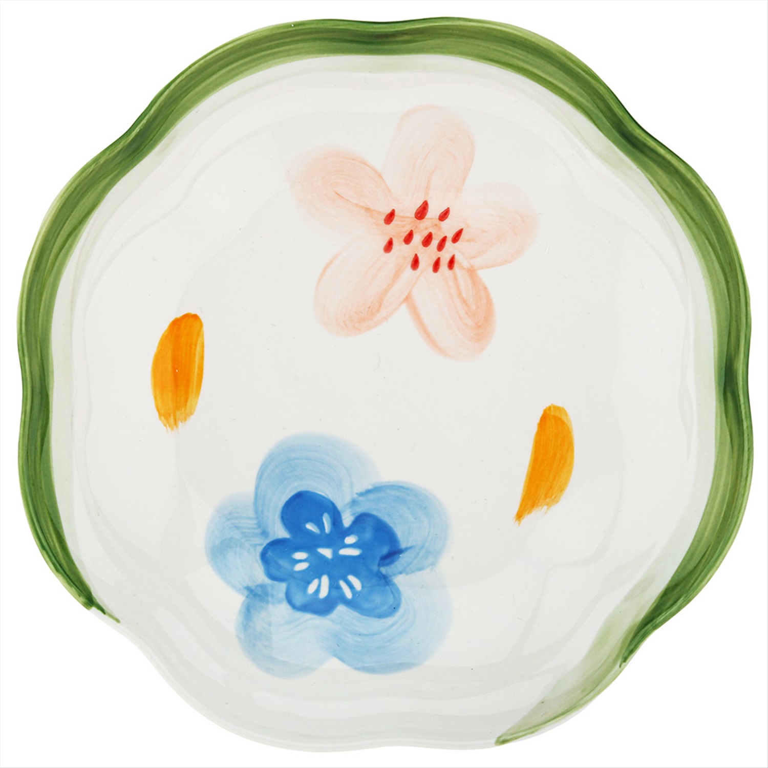 "Лето" Тарелка глубокая фарфоровая д205мм h31мм, 500мл, с деколью, форма "цветок" (Китай)