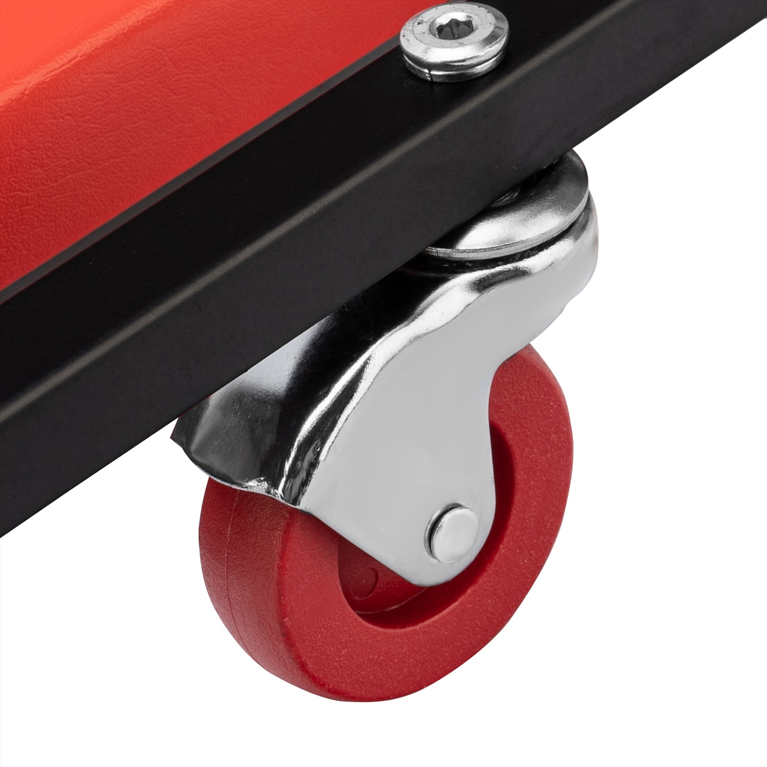 Лежак ремонтный на 6-ти колесах Matrix 567455, 1030 х 440 х 120 мм, с поднимающимся подголовником, позволяет легко въехать под машину для осуществления ее техобслуживания, ремонта систем питания, выпускной системы, трансмиссии и т.д. Он станет незаменимым помощником для автолюбителей в гараже и профессионалов в автомастерской. Преимущества