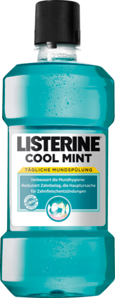 (!) Описание Listerine Mundspülung Cool mInt bekämpft schädliche Bakterien auch dort, wo die Zahnbürste nicht hinkommt. Verhindert und reduziert Zahnbelag als Hauptursache für Zahnfleischentzündungen. Mit ätherischen Ölen und Minzgeschmack.