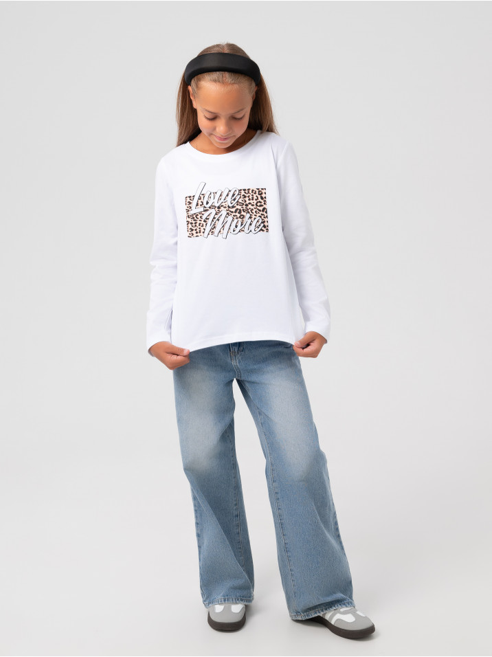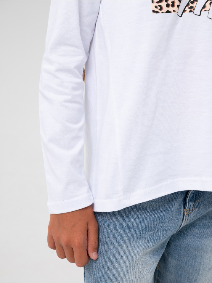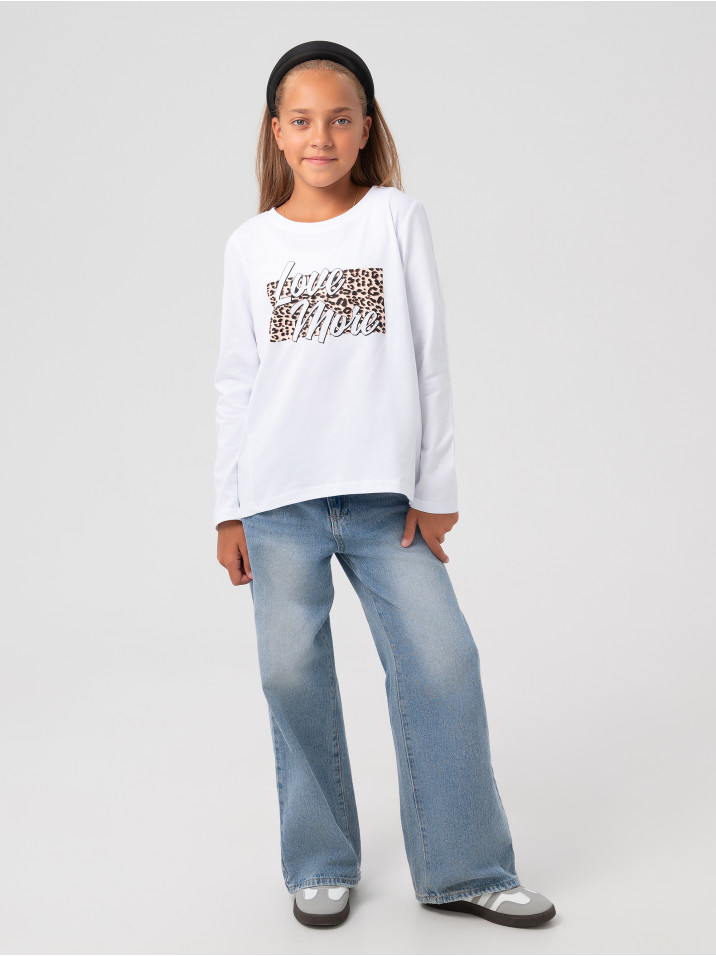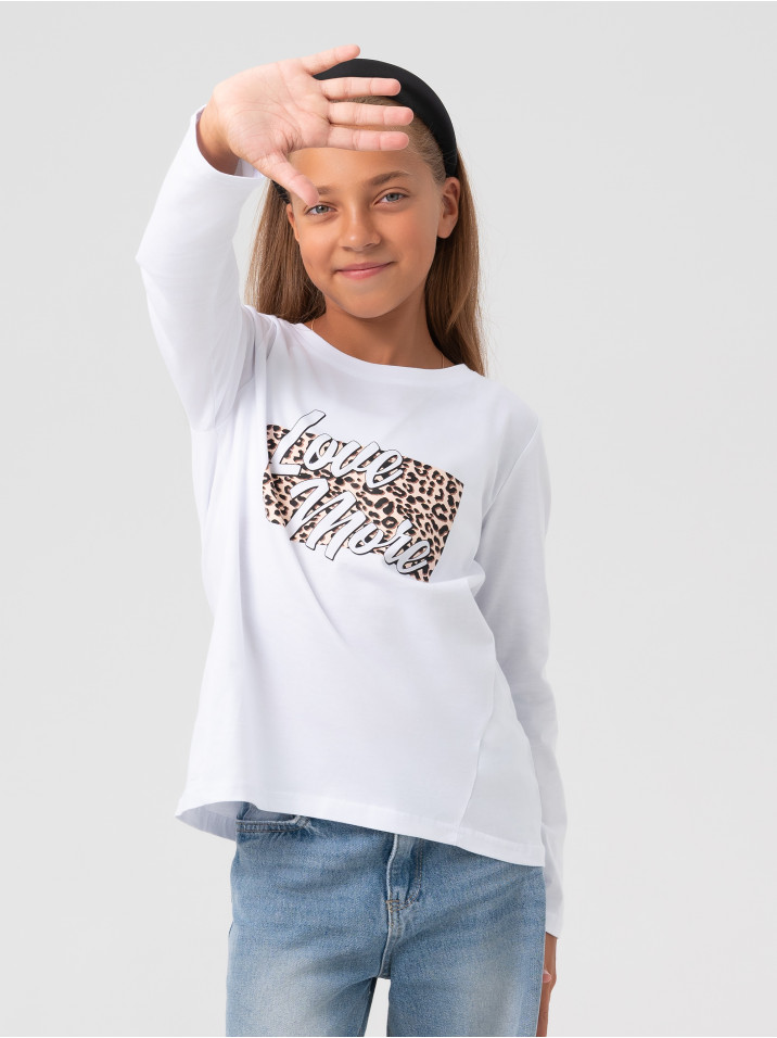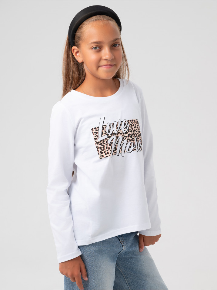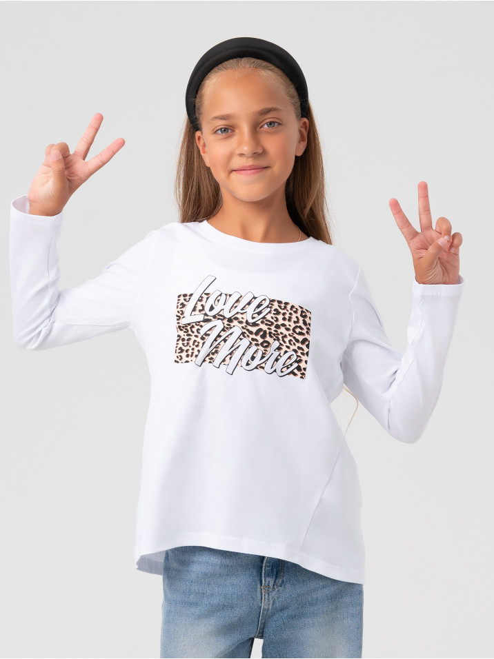 Трикотажный лонгслив для девочки . Это базовый предмет одежды с длинным рукавом и округлым вырезом, который сочетает в себе стиль и комфорт. Современный детский лонгслив свободного кроя без застёжек  не сковывает движений. Хлопок входящих в состав ткани делает свитшот приятным на ощупь, округлая горловина обработана мягкой манжетой. Модная кофточка подойдёт как для детей, так и для подростков. Разнообразная цветовая палитра придется по вкусу любой маленькой моднице, а стильный принт надпись всегда добавят изюминку образу и выделить среди других. Базовая подростковая кофта эффектно смотрится с любым видом низа: джинсами, юбками, шортами, велосипедками. Футболка для девочки с длинным рукавом универсальная вещь для любого времени года. Свитшот детский отлично подойдёт и для активного отдыха на природе, занятий спортом, путешествий, а также в качестве формы в детском саду, так и в школе. Лонг для ребёнка универсальный вариант для повседневной носки дома, для вечерних прогулок летом и весной, семейных фотосессий, в качестве нарядной одежды на праздник. Наш трендовый джемпер с современным дизайном - это отличный выбор для девочек, которые хотят быть яркими, модными, следят за модой и ведут активный образ жизни.