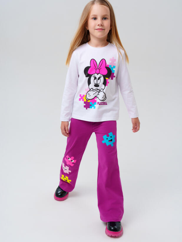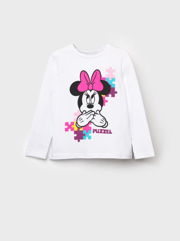 Модный трикотажный лонгслив с принтом Минни Маус для девочек от PlayToday — лучшее решение для школы, сада и прогулок.