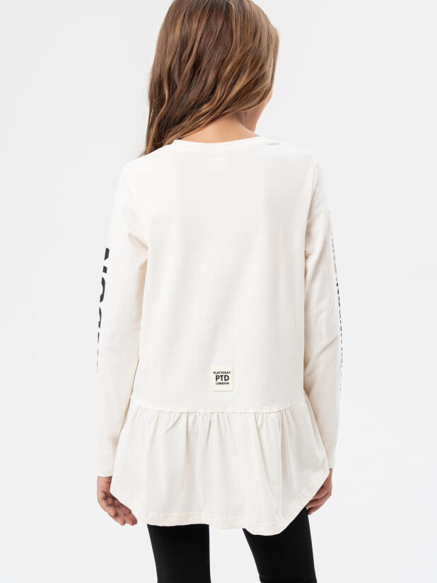 Трикотажный лонгслив оверсайз от PlayToday для девочки подростка — модная футболка с длинным рукавом и декоративной баской.