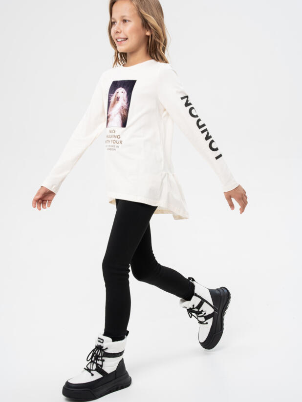 Идеальный вариант для повседневной носки: в школу, на прогулку, в гости или в торговый центр. Уместен в демисезон или зимой как первый слой под свитшот или худи.
