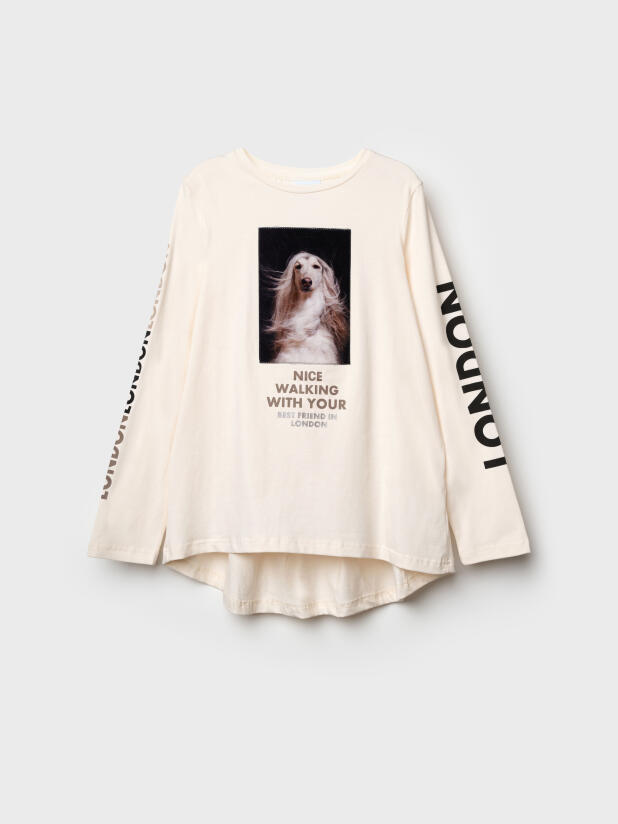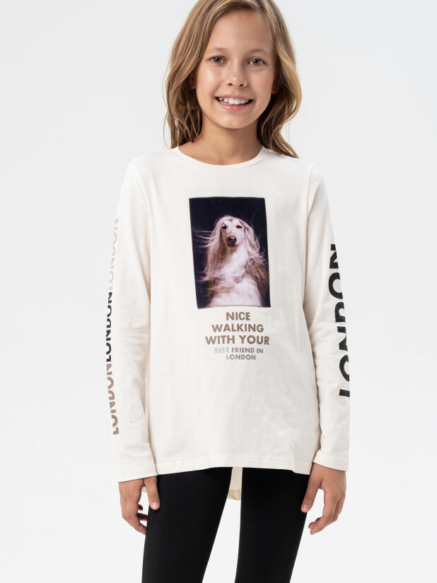 Объёмный силуэт, трендовый принт на велюре и надписи на рукавах делают эту модель стильным акцентом подросткового гардероба. Лонгслив выполнен из приятного к телу эластичного трикотажа и не сковывает движения.