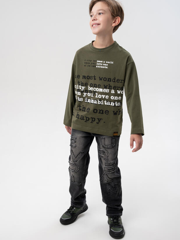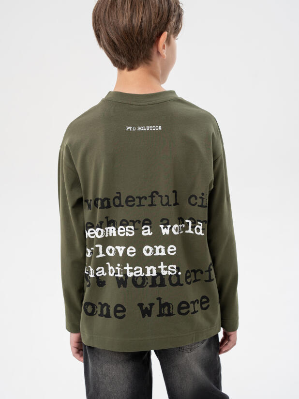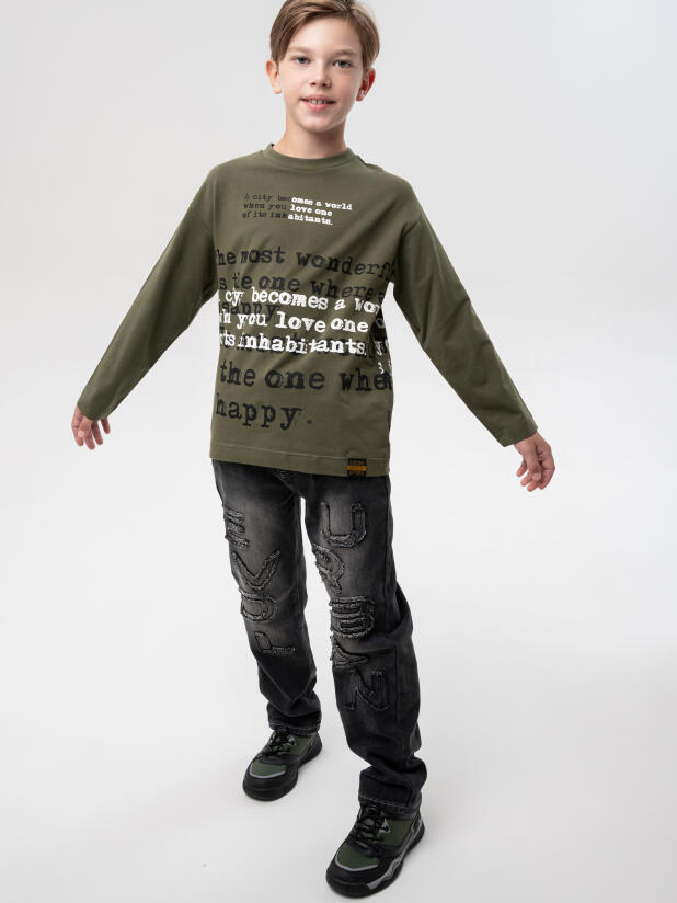 Стильный зелёный лонгслив оверсайз для мальчика подростка от PlayToday — практичная футболка с длинным рукавом для школы и прогулок. Модель выполнена из мягкого хлопкового трикотажа, который дышит, приятен к телу и безопасен для кожи ребёнка. Современный принт и удобный крой делают лонгслив стильным элементом подросткового гардероба.