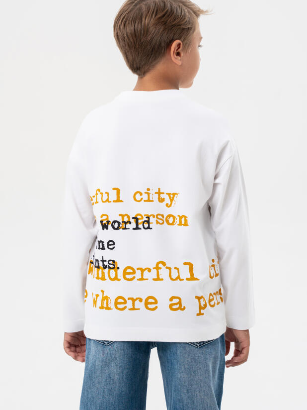 Стильный белый лонгслив для мальчика подростка от PlayToday — универсальная и современная вещь для школы и активных будней.